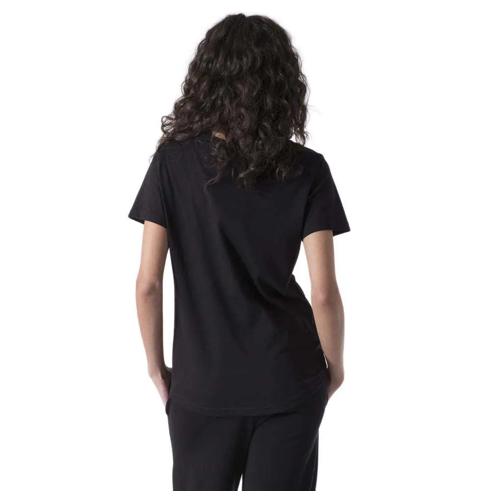 Футболка из удобного хлопкового трикотажа со стандартным кроем. Вырез лодочкой подчеркивает женственность изделия, а логотип Everlast с переливающимся эффектом придает гламурный штрих, который не останется незамеченным.