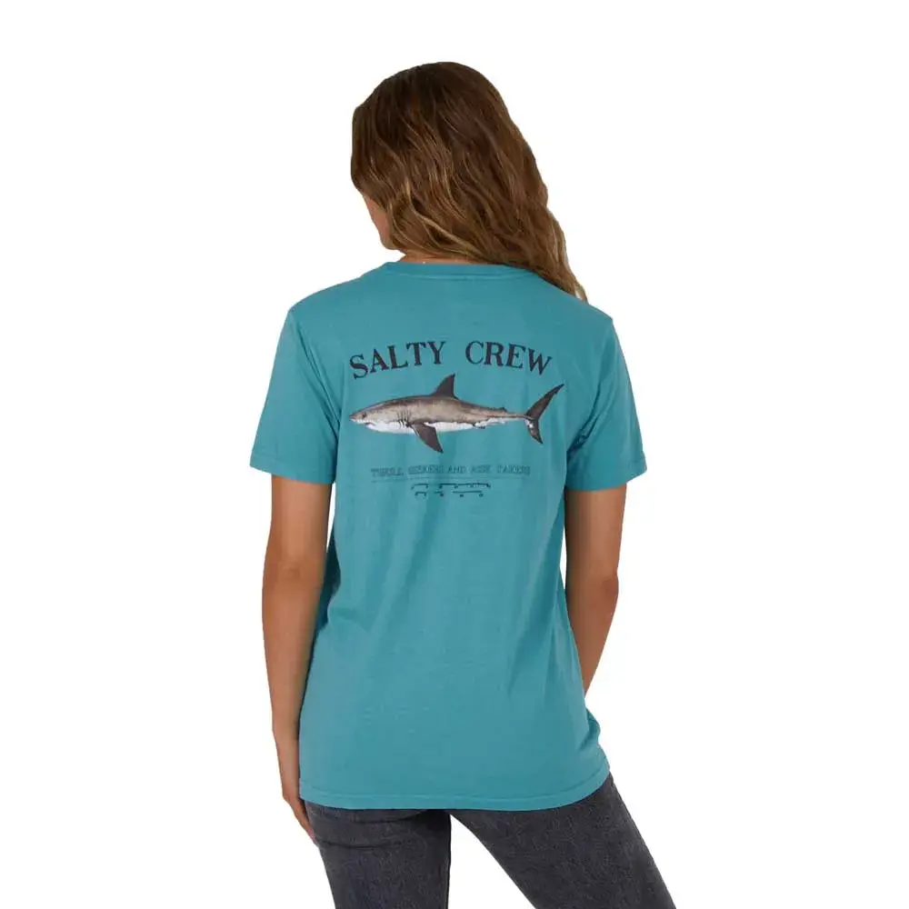 Футболка с коротким рукавом SALTY CREW Bruce boy в цвете Sea Green — идеальное дополнение к повседневному гардеробу любой женщины. Изготовленная из мягкой и удобной ткани, эта футболка имеет свободный фасон boy fit для модного и непринужденного образа. Цвет Sea Green добавит нотку свежести вашему образу, а логотип SALTY CREW на груди придаст ему нотку пляжного стиля. Нежитесь ли вы на пляже или бегаете по делам в городе, эта универсальная футболка обязательно станет вашим фаворитом.