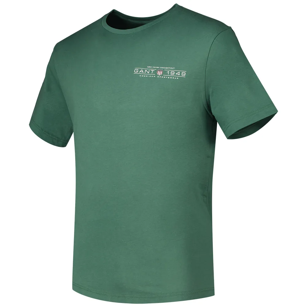 GANT Printed Футболка с коротким рукавом с графическим принтом в цвете Woody Green — это больше, чем просто футболка, это воплощение непринужденного стиля и непреходящего качества.