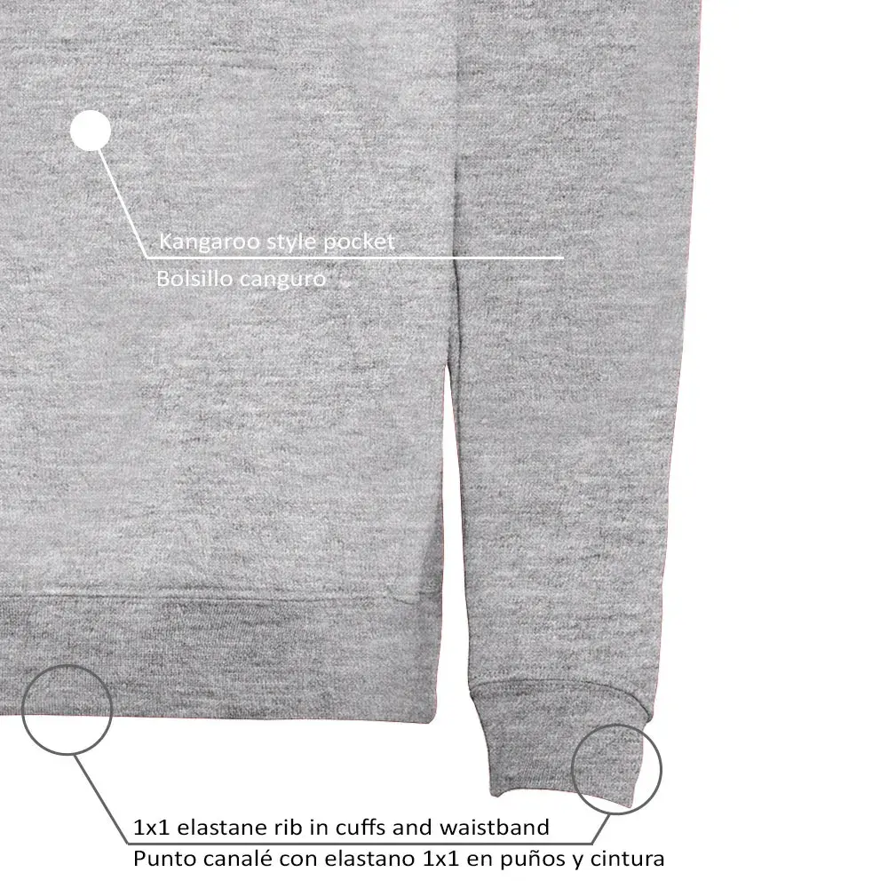 Усиленные скрытые швы на воротнике и карман-кенгуру.