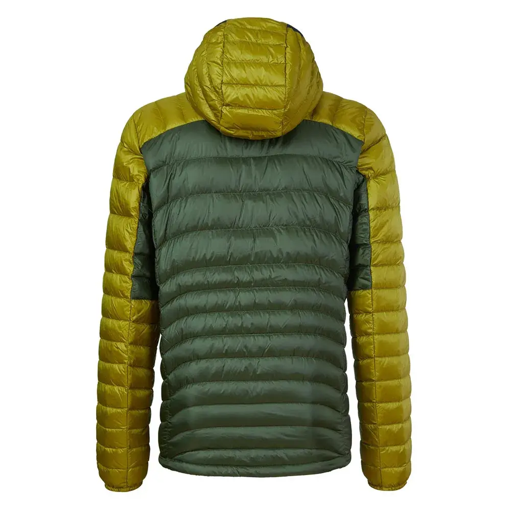 - Внешняя ткань: нейлон 20D microripstop с полуматовой отделкой DWR из 100% полиамида (38 г/м²) Утеплитель: гусиный пух 90/10 700 FP с водоотталкивающей обработкой (130 гр)