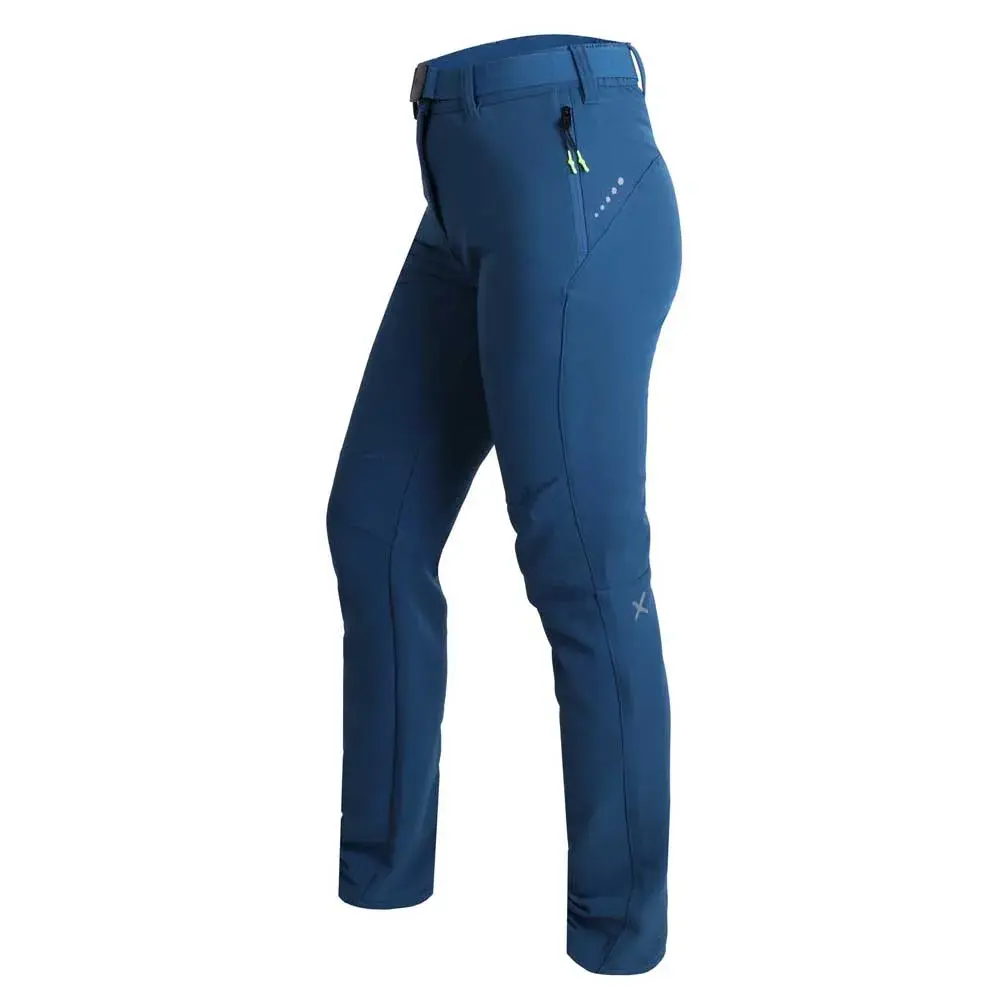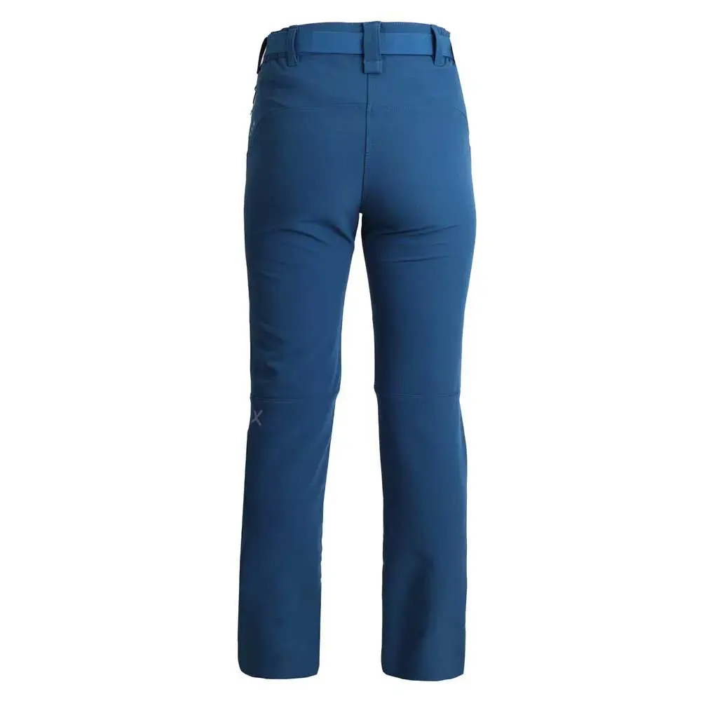 Полуэластичный пояс с застежкой на кнопки и регулируемым эластичным поясом, два кармана на молнии, складки в области колен, регулируемая резинка внизу, светоотражающие логотипы.