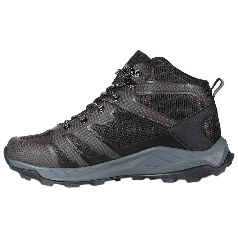 Походные ботинки HI-TEC Toubkal Mid WP — идеальный вариант для мужчин, которые ищут прочную и надежную обувь для своих приключений на свежем воздухе. Эти стильные ботинки представлены в нейтральном цветовом сочетании шоколадно-коричневого, черного и светло-серого цветов, что делает их достаточно универсальными, чтобы соответствовать любому наряду.