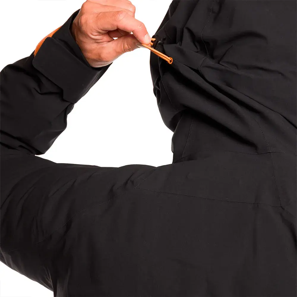 Куртка из Pertex Shield 3L с капюшоном, водонепроницаемыми молниями, вентиляцией рукавов, эластичным подолом, регулируемыми манжетами на липучке, карманами на молнии.