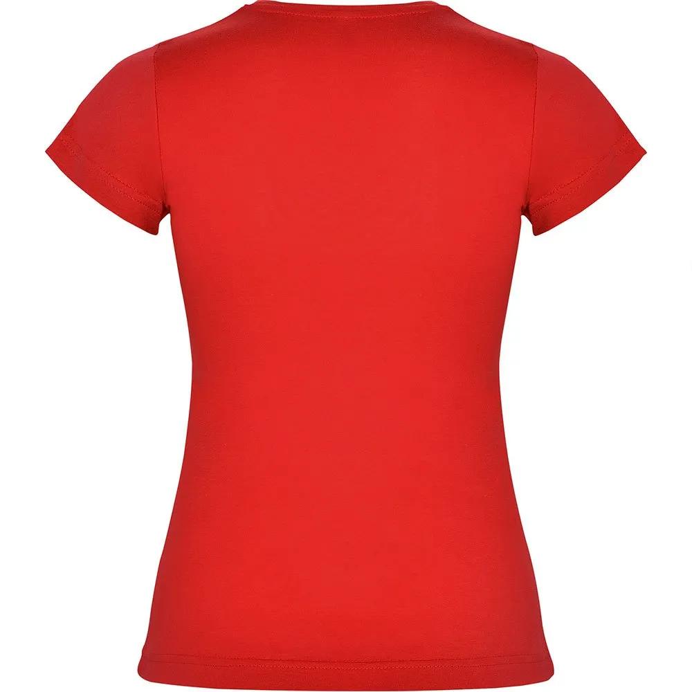 Приталенная футболка с коротким рукавом, круглым вырезом горловины, двухслойной резинкой 1x1, усиленными закрытыми швами на горловине и плечах, боковыми швами.