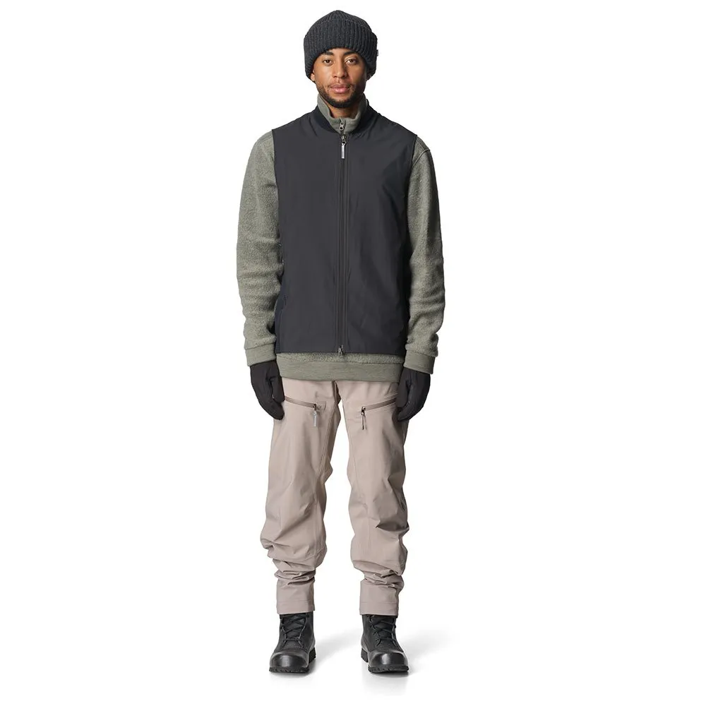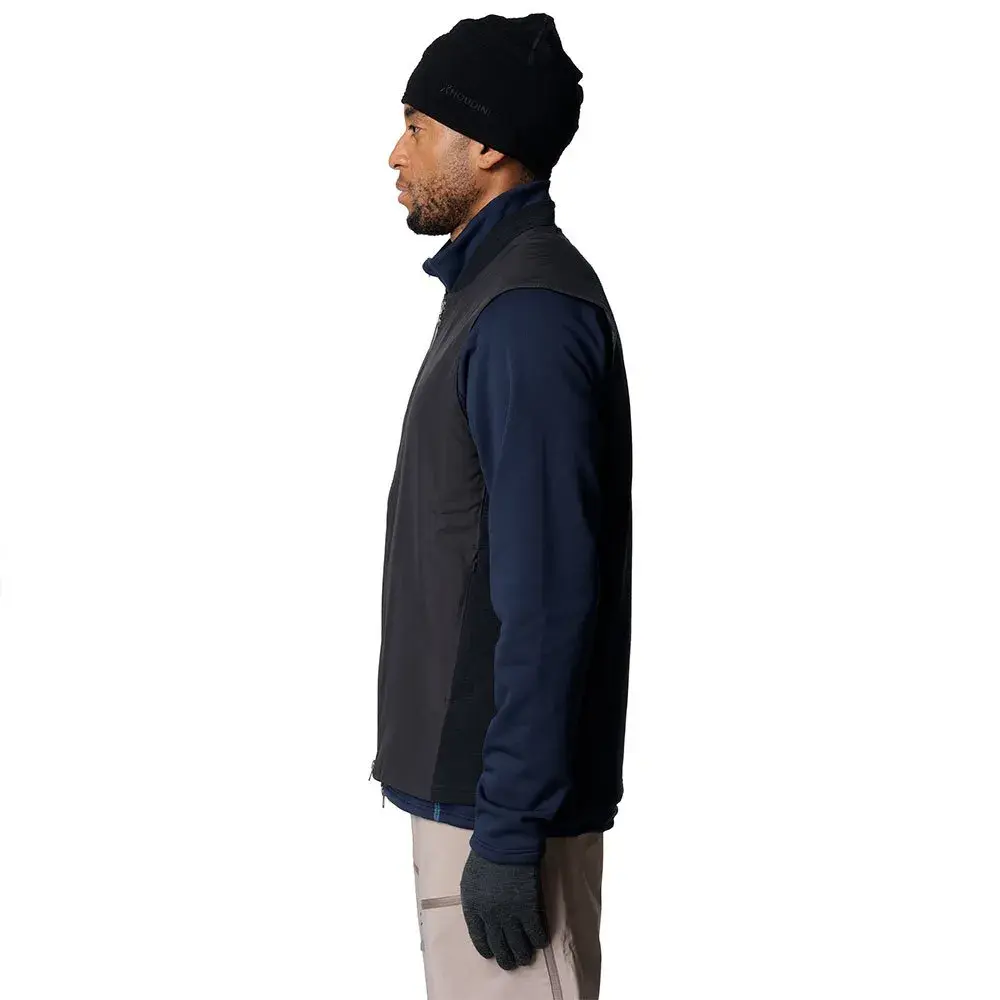 Легкий, теплый и хорошо дышащий мужской жилет среднего слоя, который сочетает в себе мягкий и удобный эластичный флис с прочной и дышащей тканью рипстоп, блокирующей ветер.
