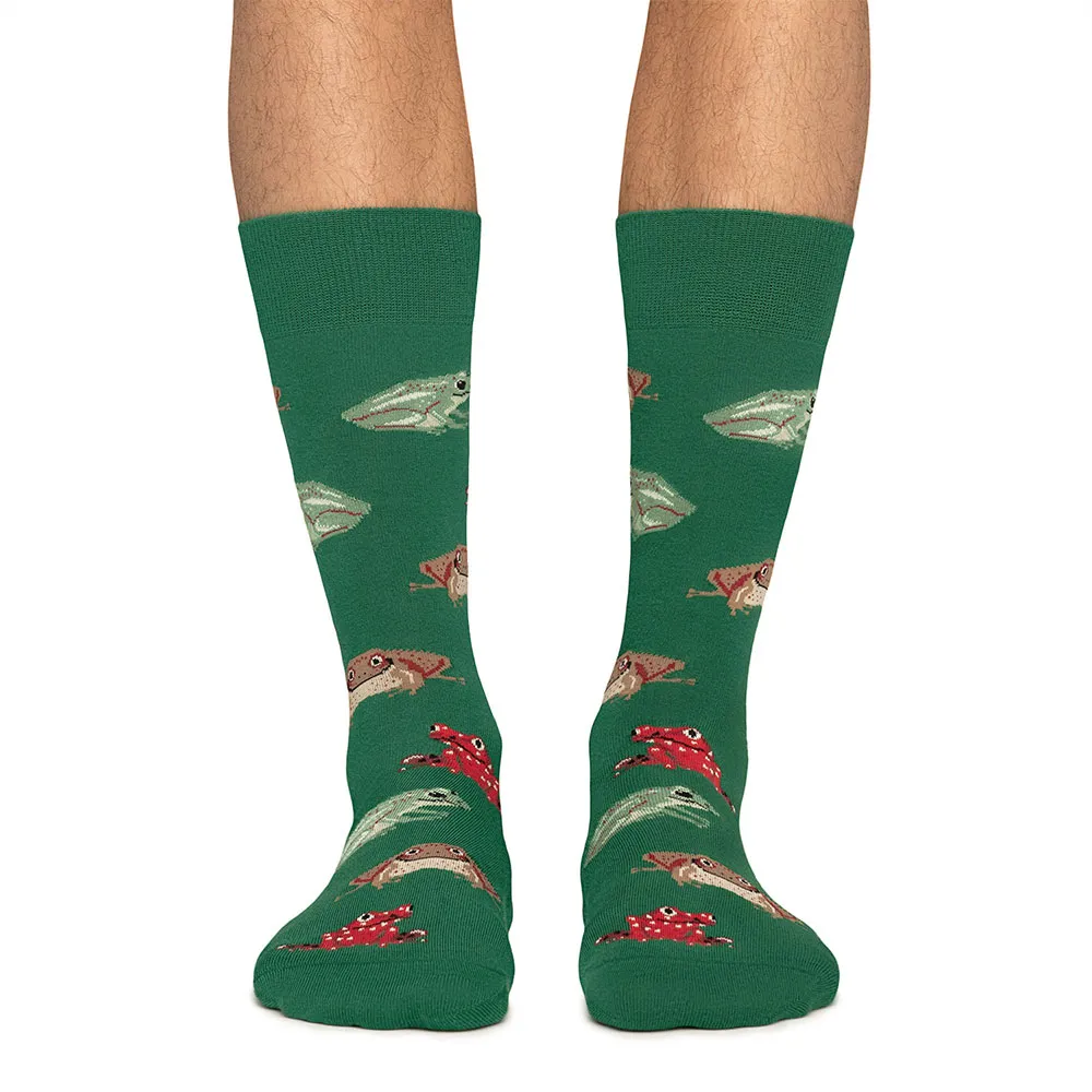 Лягушки - Зеленые - L - Длина до середины икры - Повседневные - Коллекция Garden - Унисекс - 78% органический чесаный хлопок + 20% полиамид + 2% эластан.