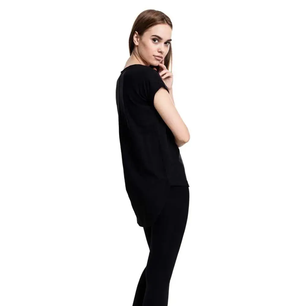 Широкий круглый вырез, отвернутые рукава и удлиненная спинка придают повседневный стиль. Леггинсы — идеальные компоненты для Ladies Long Back Shaped Slub Tee от Urban Classics.