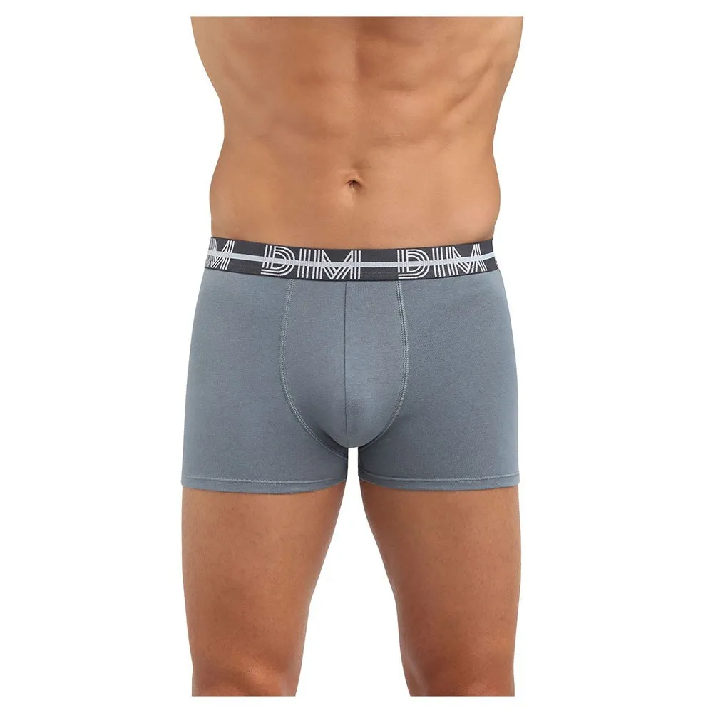 Модель трусов-боксеров DIM очень красочная, современный стиль, который следует модным тенденциям, формат x3 представлен в веселых цветах и контрастном полосатом поясе.
