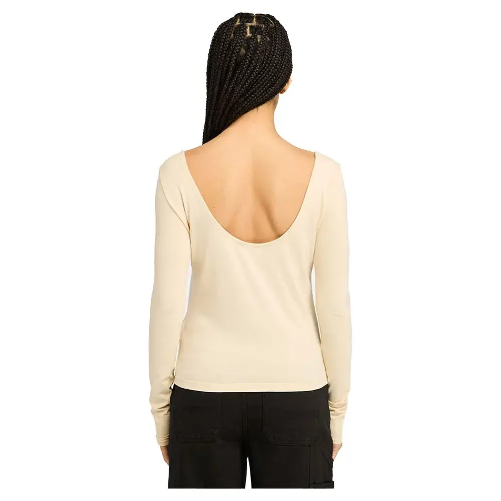 Выглядите непринужденно и стильно в этой женской облегающей футболке с длинным рукавом из трикотажного полотна, состоящего на 95% из органического хлопка и на 5% из эластана.