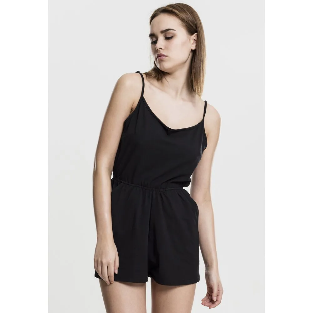 С этим коротким женским комбинезоном на бретельках от URBAN CLASSICS вы будете хорошо одеты для пляжа или города - потому что там просто жарко. Узкие бретельки, перекрещенные на спине, подчеркивают женственный стиль. Эластичные ленты в области бедер обеспечивают надежную посадку, а мягкая эластичная трикотажная ткань делает его очень удобным для ношения. Модная базовая вещь, в которой вы выглядите хорошо. Oberstoff 1: 95% Baumwolle 5% Elasthan, Stretch Jersey, 180 GSM