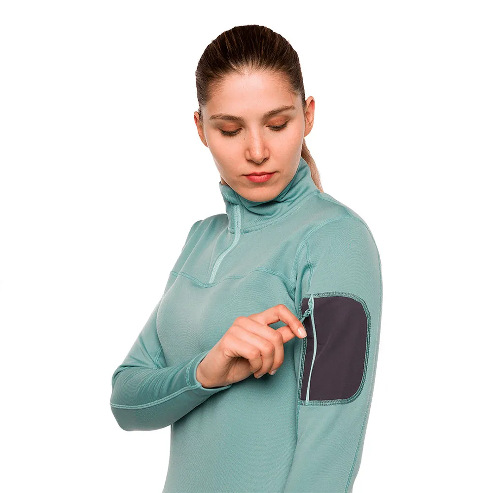 С застежкой-молнией на шее и карманом на рукаве, он обеспечивает комфорт, свободу движений, тепло и водоотталкивающие свойства.