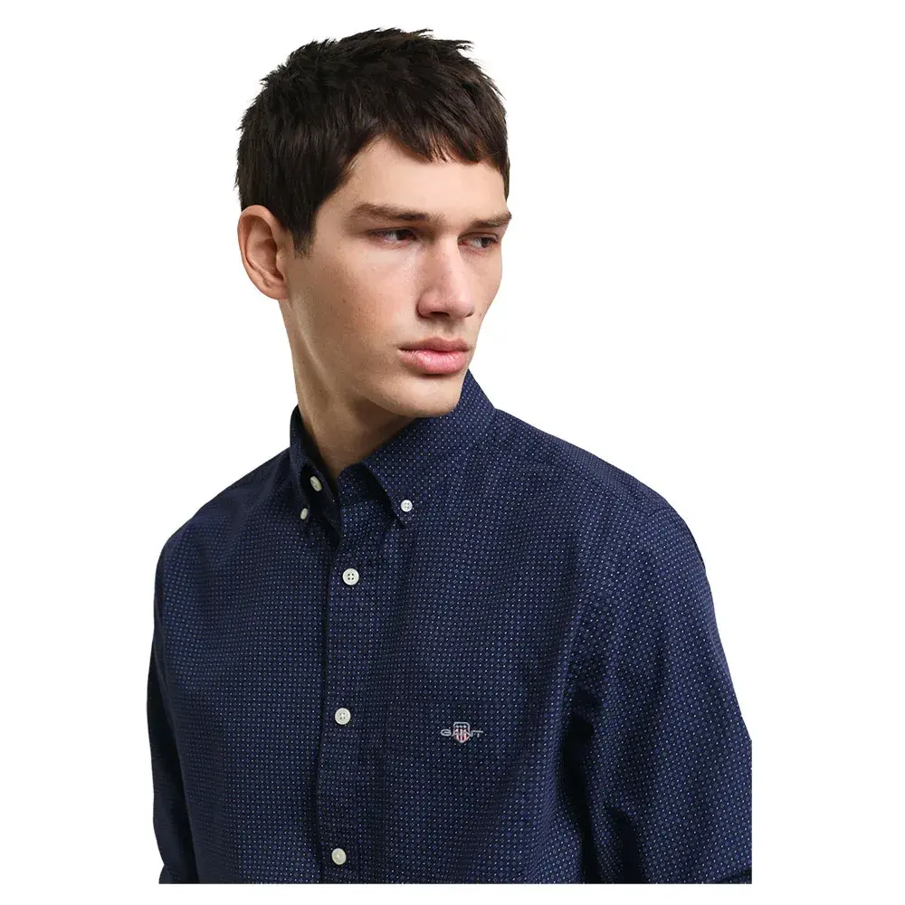 Эта базовая рубашка классического кроя из 100% хлопка украшена тонким микропринтом по всей поверхности.