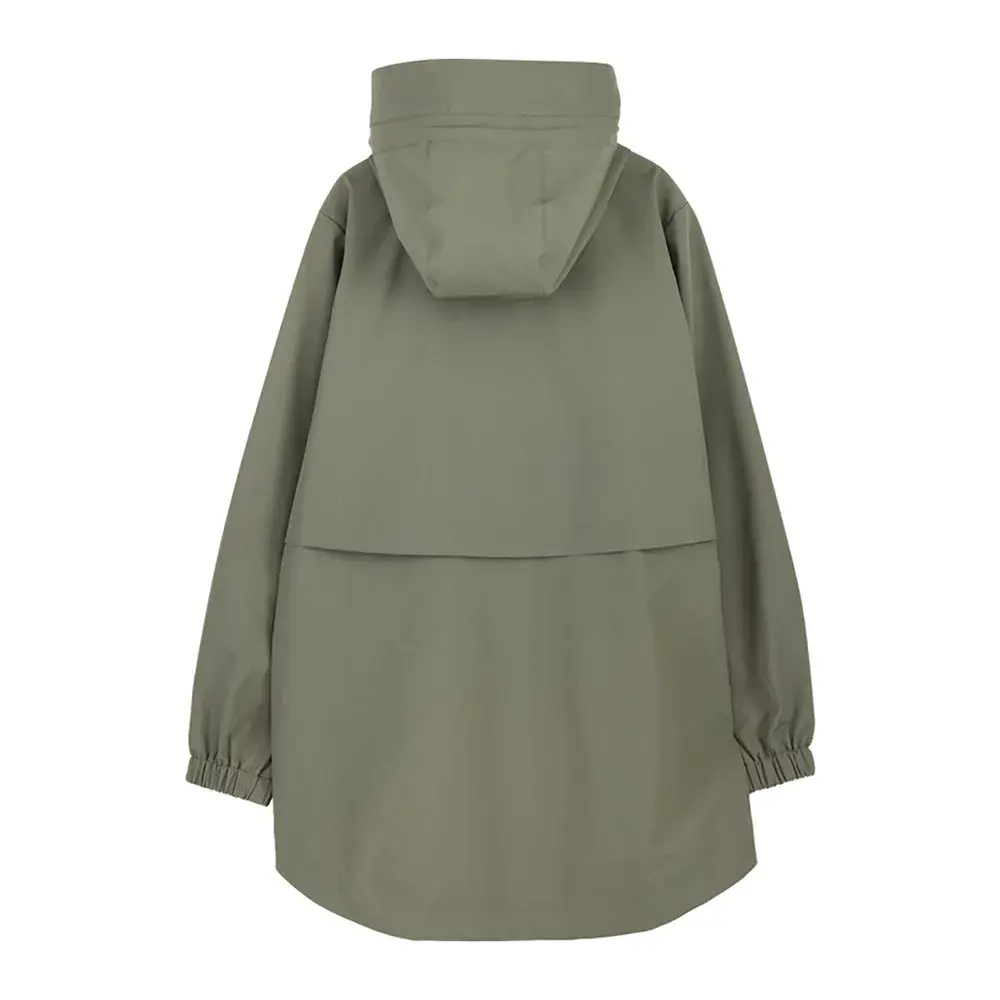 Свободное пальто с классическим скандинавским дизайном. Удобная ткань Kia Coat из 100% переработанного полиэстера дышит и мягка на ощупь. Разработанное как универсальное пальто для теплой погоды, пальто слегка тянется и имеет кокетку со скрытыми под ней шнурами. 3000 мм водяного столба, тщательно проклеенные швы и капюшон с трубкой обеспечивают защиту от мягких летних ливней.