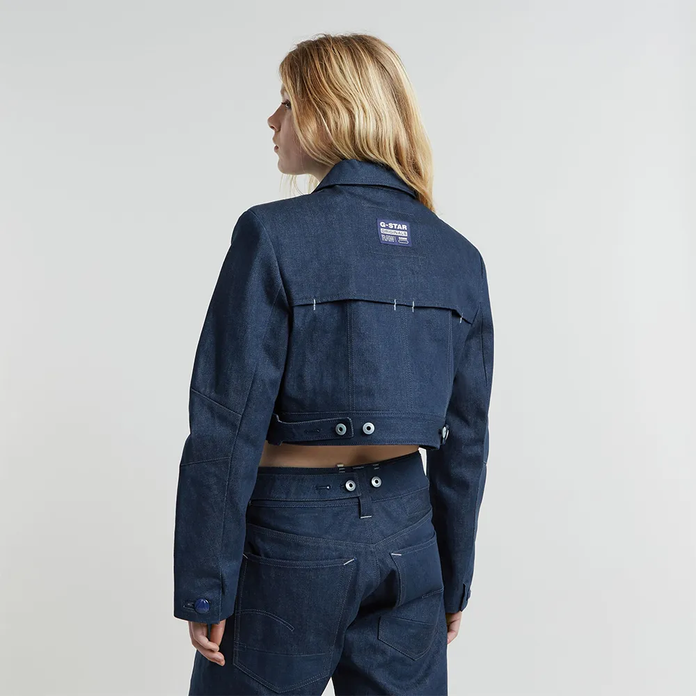 Джинсовая куртка G-Star Origins укорочена и имеет карманы с клапанами и закрепками контрастного цвета.