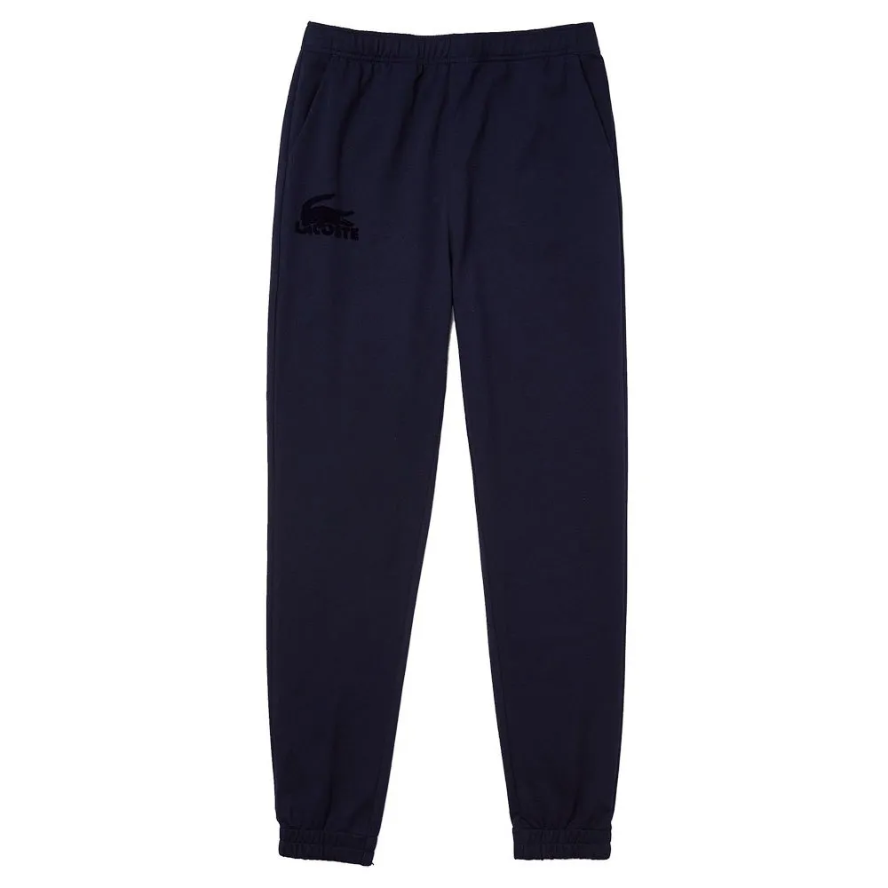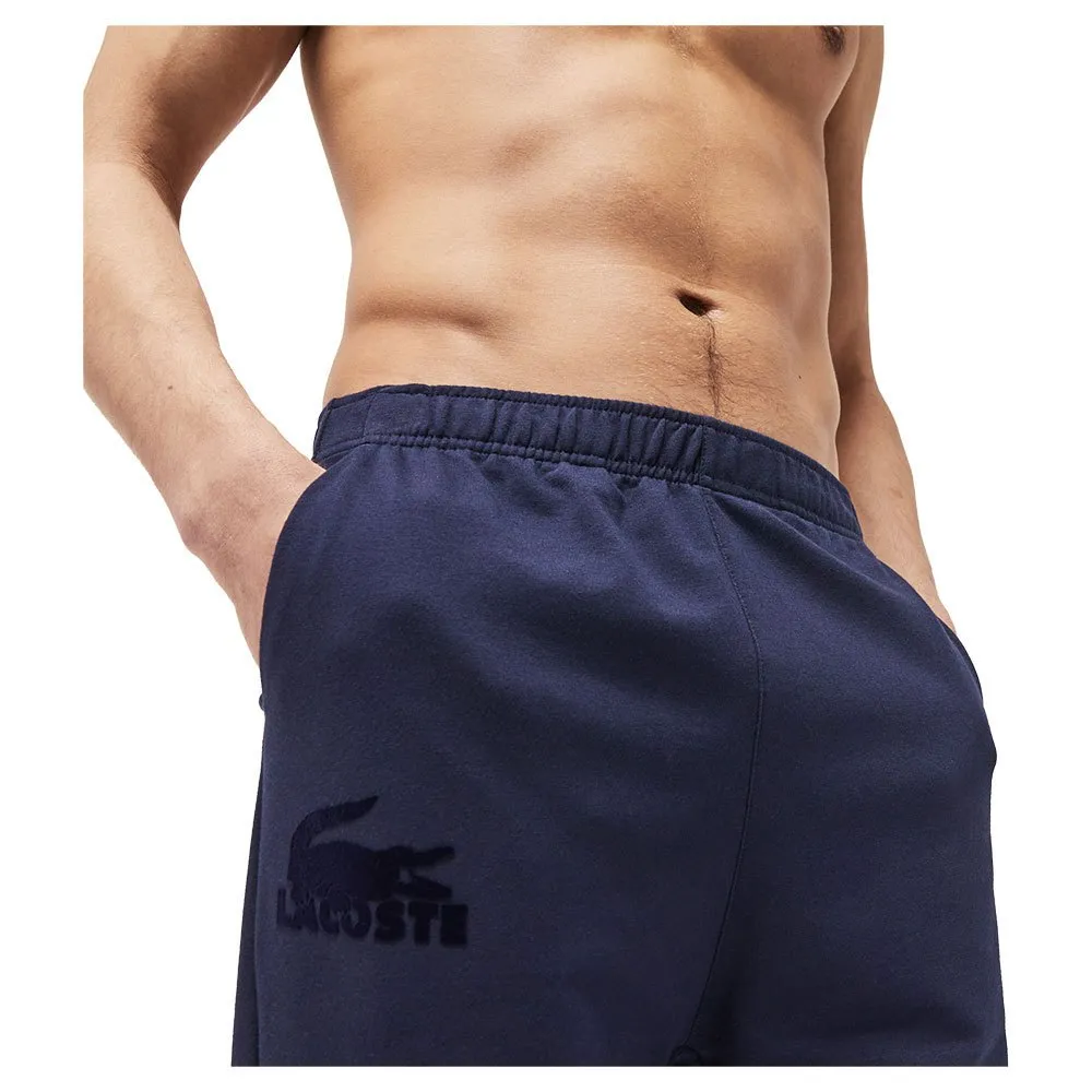 Мужские спортивные штаны для дома из смеси хлопкового флиса, эластичная смесь хлопкового флиса, эластичная талия и щиколотки, боковые карманы, надпись Lacoste и большой велюровый крокодил на правом бедре, крой, обеспечивающий комфорт и поддержку в любых обстоятельствах, домашняя одежда не подлежит возврату, обмену или возмещению.