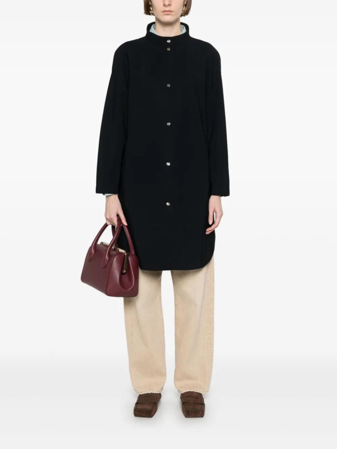 Черная застежка на кнопку спереди, два боковых кармана, спущенное плечо, длинные рукава