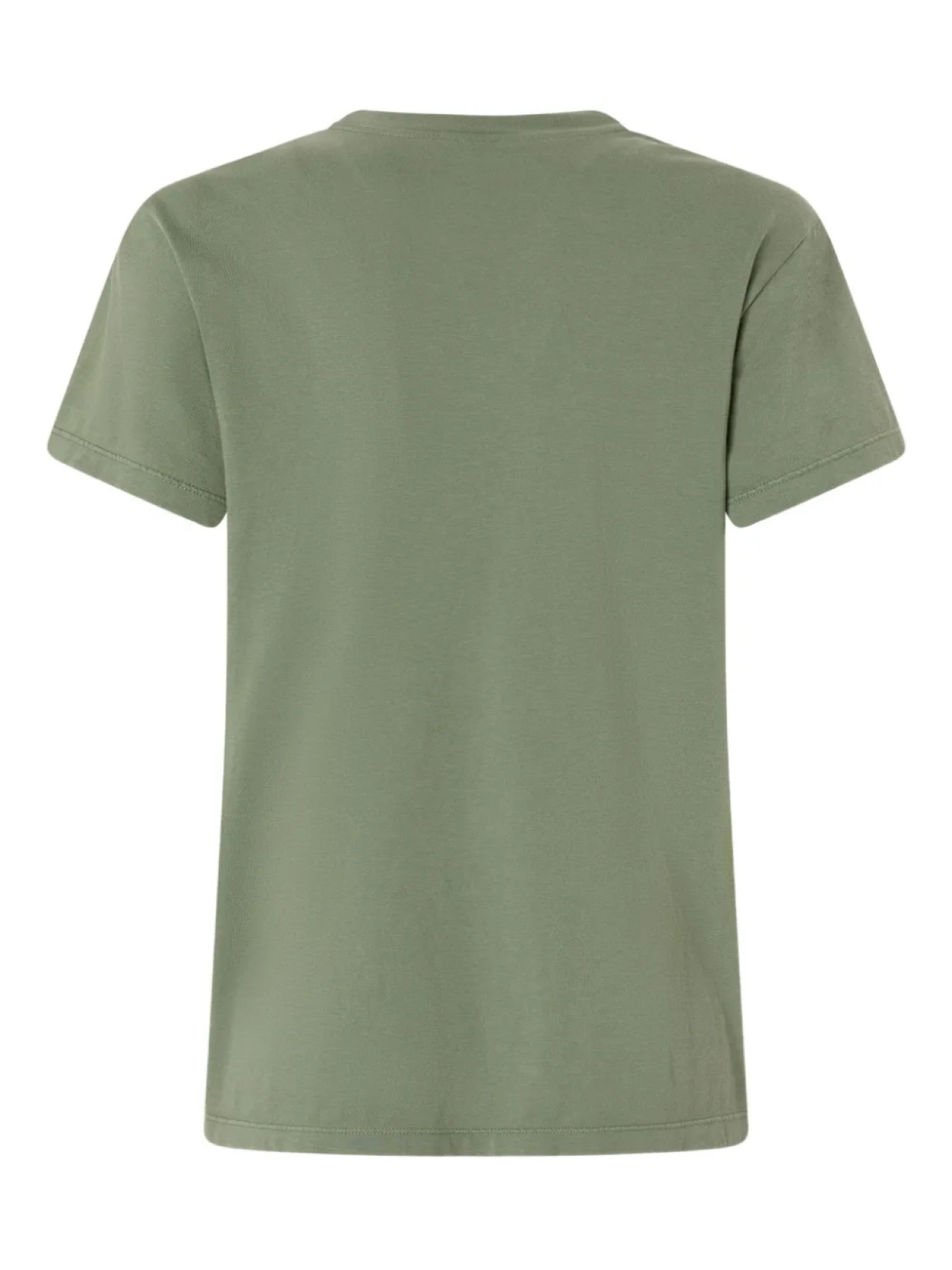 Оливково-зеленый круглый вырез, короткие рукава, графический принт спереди