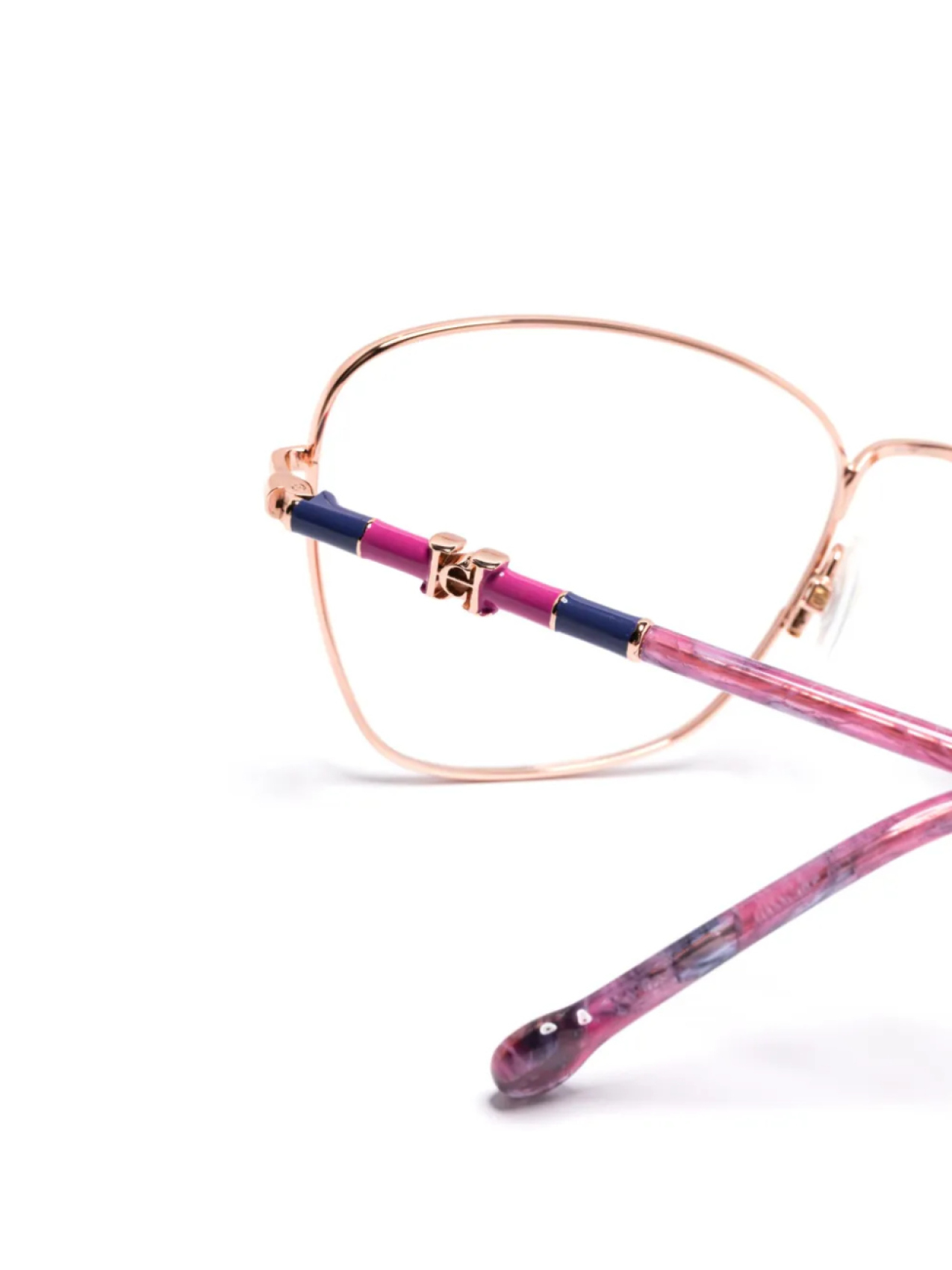 Носоупоры в прямоугольной оправе тёмно-фиолетового цвета. Эти очки поставляются с защитным футляром. Все очки FARFETCH продаются в оправах без диоптрий.