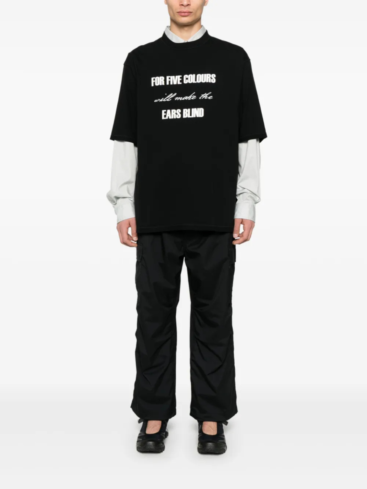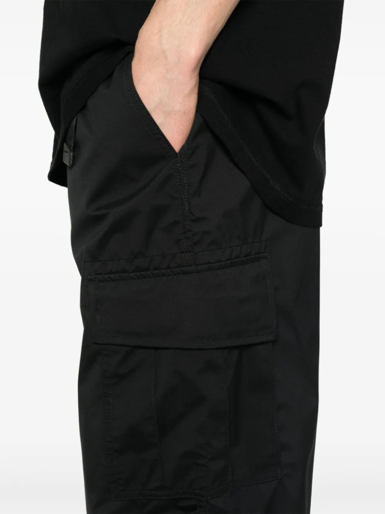 Черная потайная застежка на пуговицы, эластичный пояс, два боковых прорезных кармана, два боковых кармана-карго