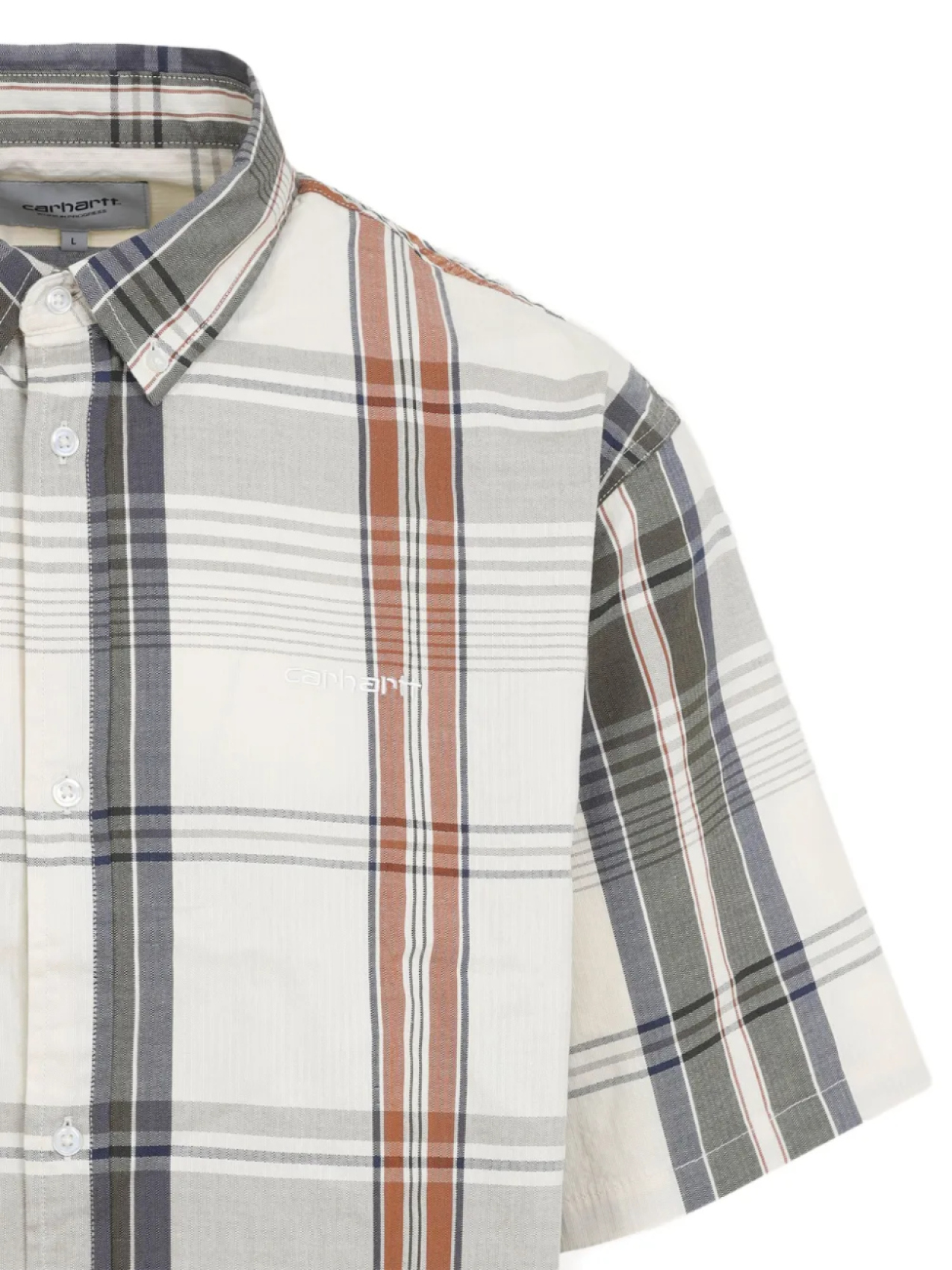 Застежка на пуговицы белого/разноцветного цвета спереди, вышитый логотип на груди, воротник на пуговицах, короткие рукава
