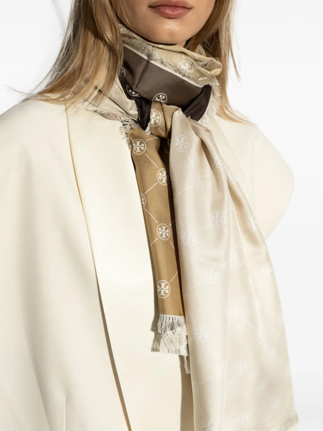 Шарф с логотипом Tory Burch и бахромой, нейтральный 69 472₽