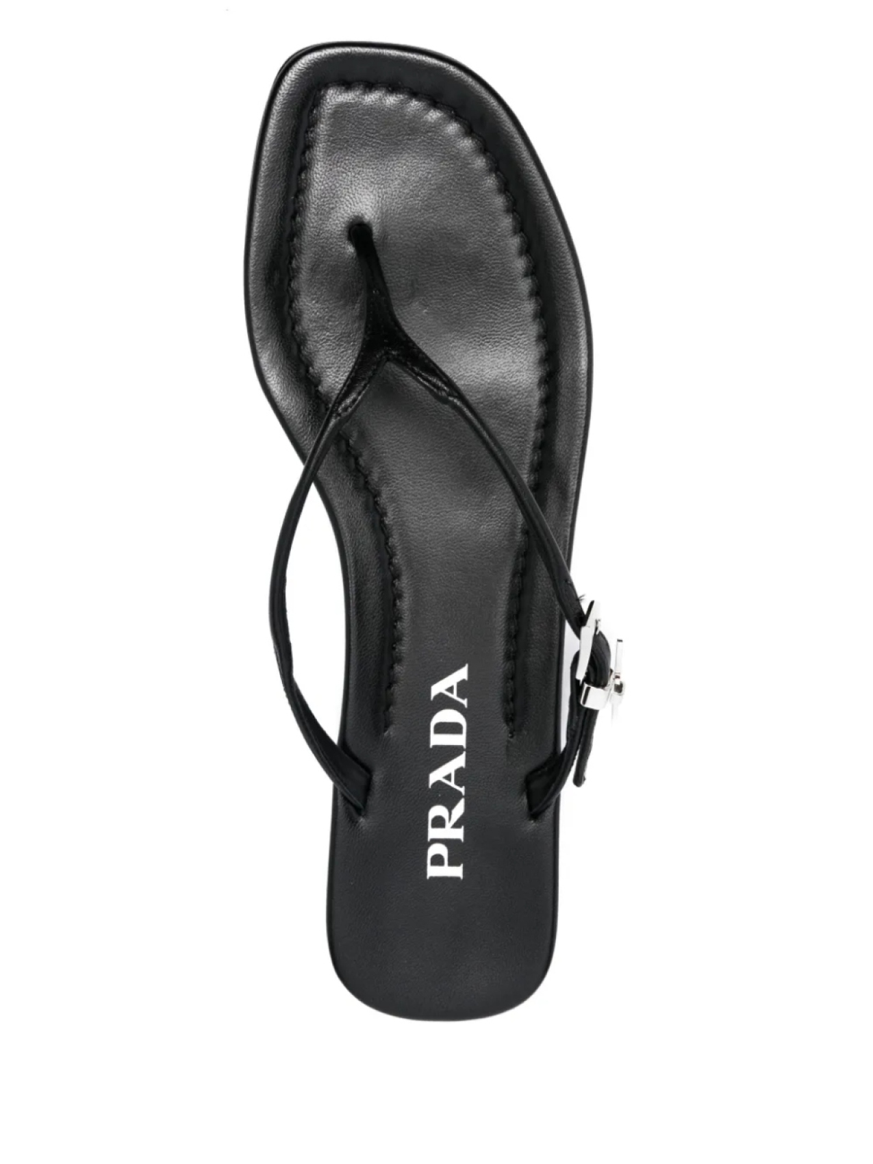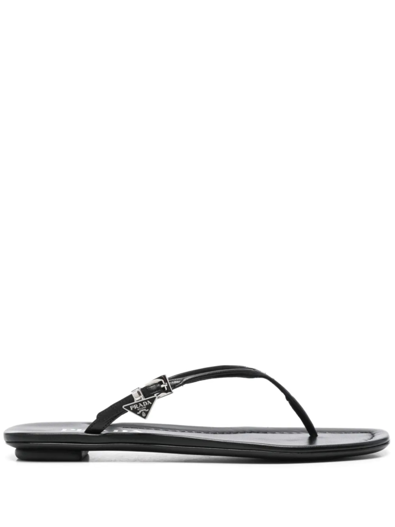 Эмалированные шлепанцы с треугольным логотипом Prada, черный