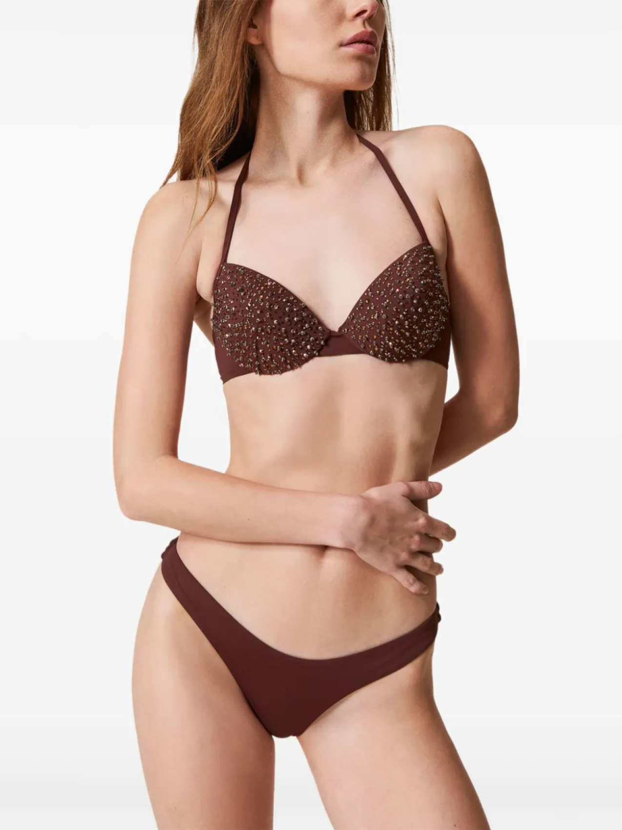 TWINSET топ бикини с вышивкой и эффектом пуш-ап, коричневый 12 107₽