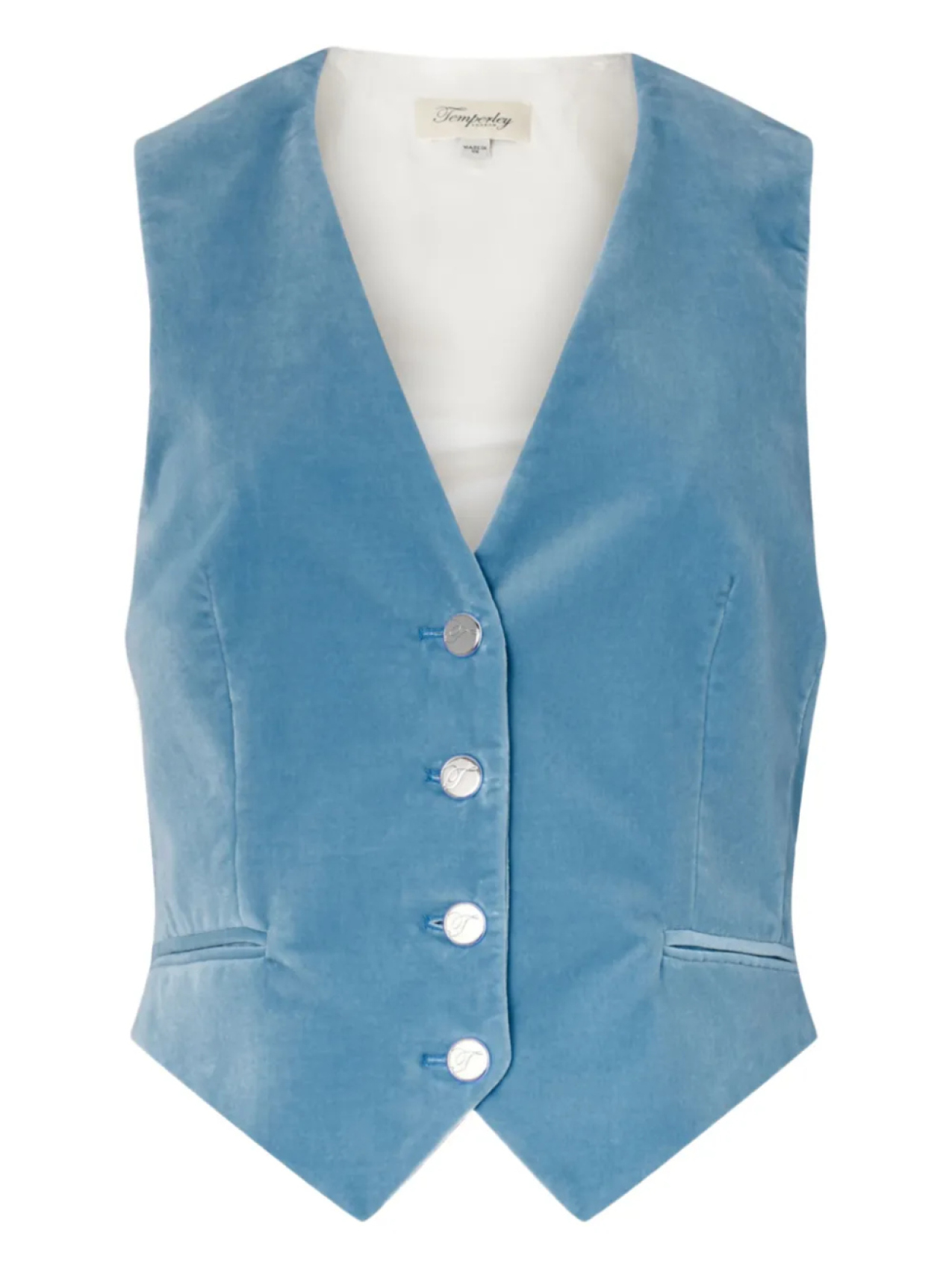 Застежка на пуговицы спереди ледяного цвета, V-образный вырез, без рукавов, два боковых прорезных кармана