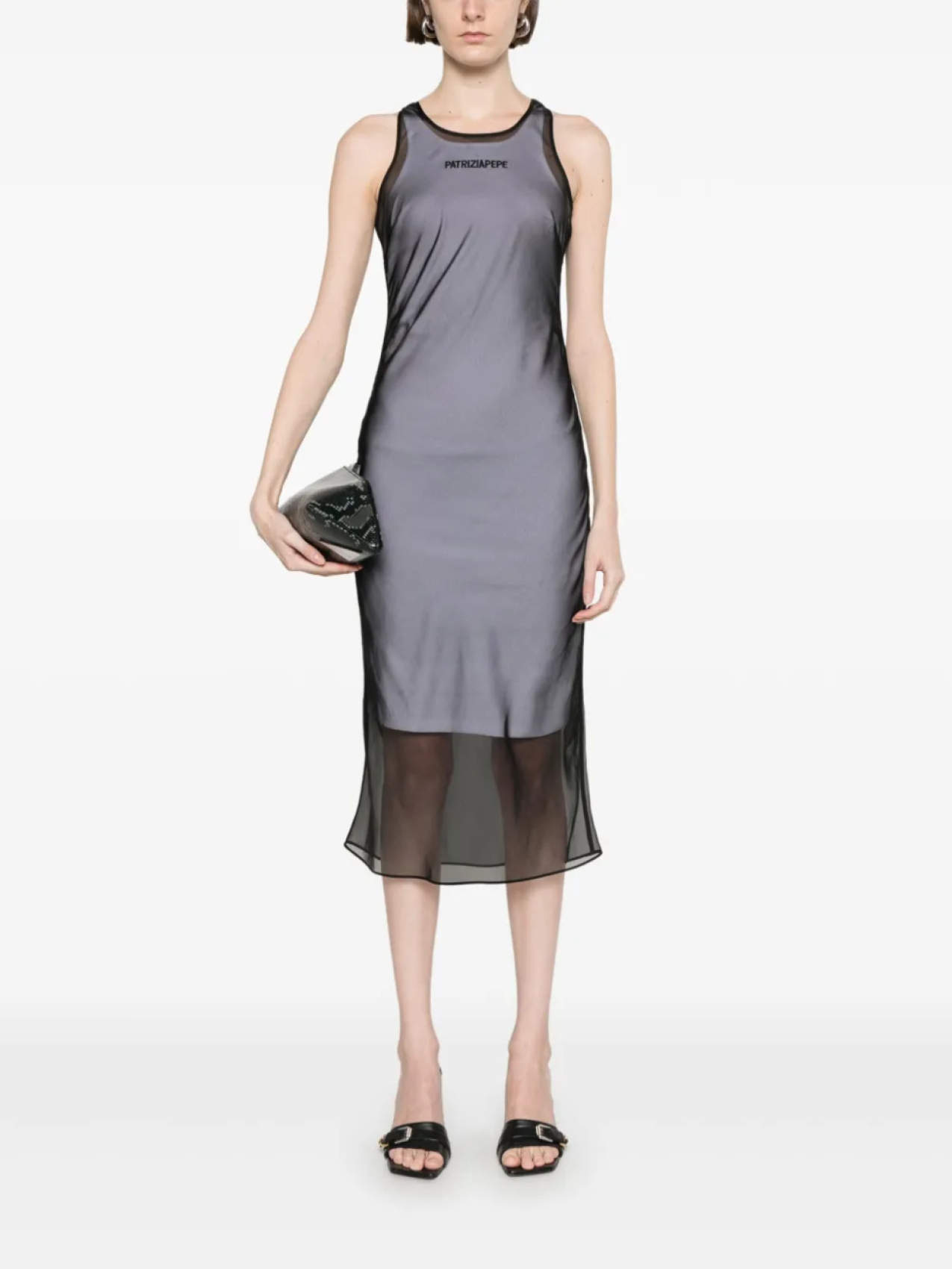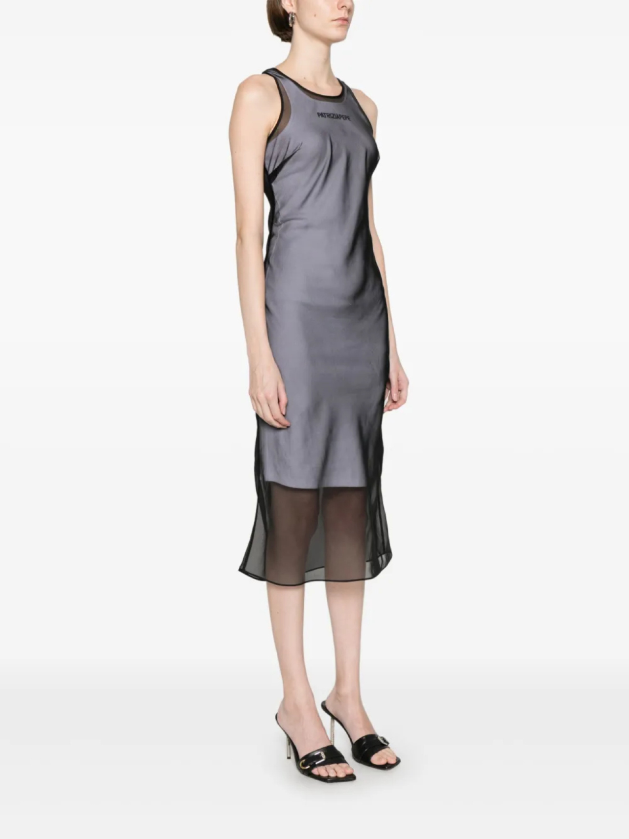 Многослойное платье миди Patrizia Pepe с вышитым логотипом, черный