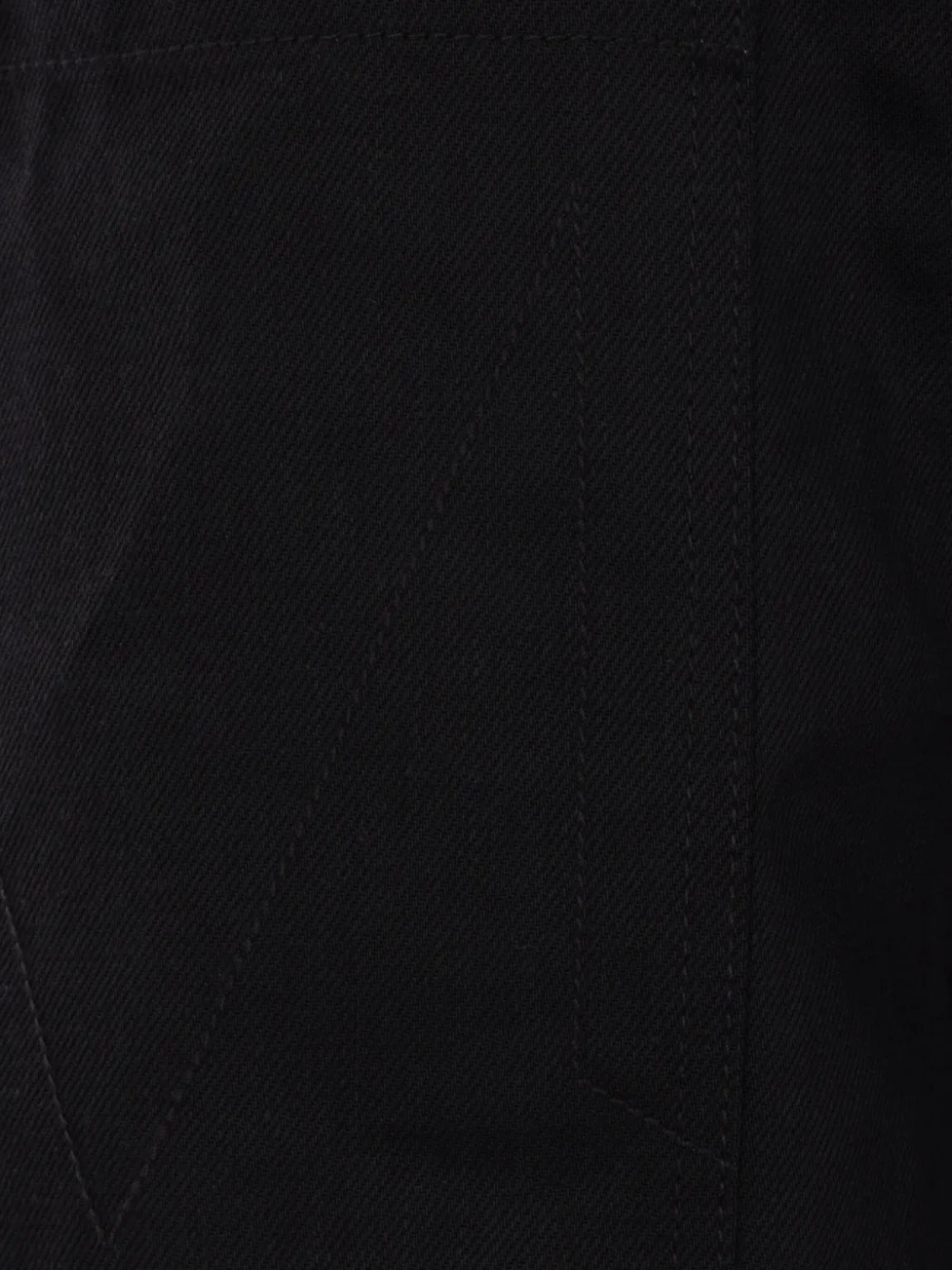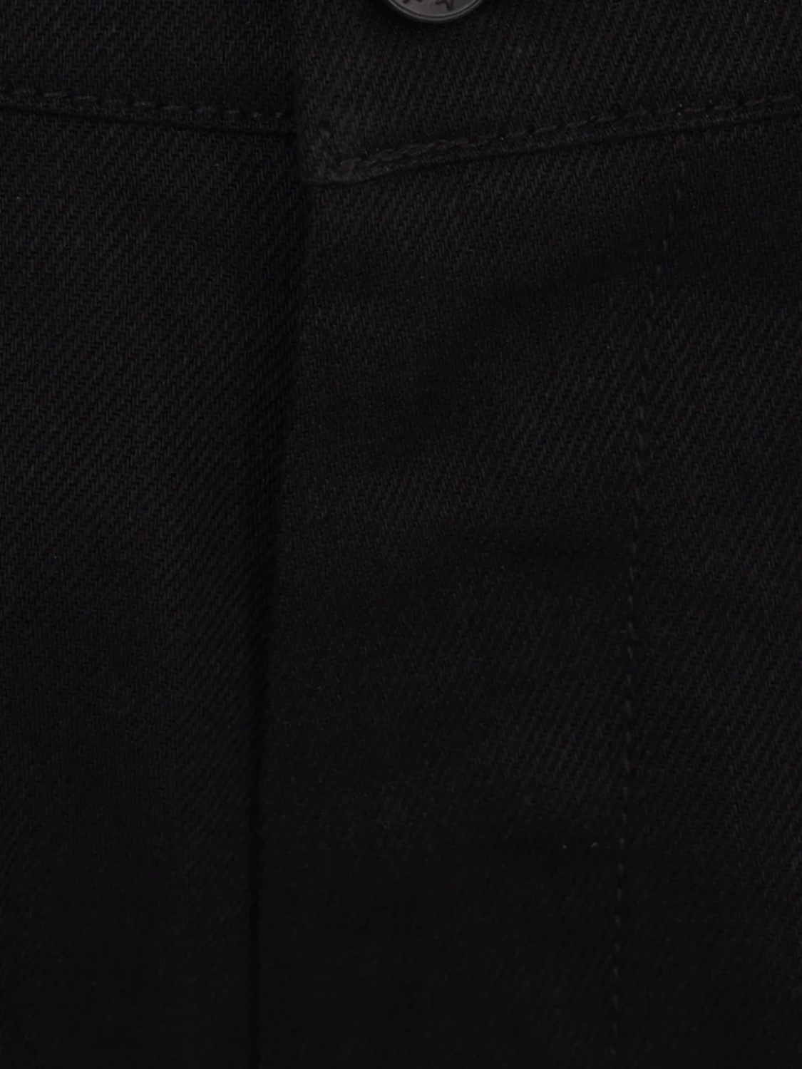 Черная потайная застежка на пуговицы и ширинку сзади, эластичный пояс сзади, пять классических карманов, шлевки для ремня