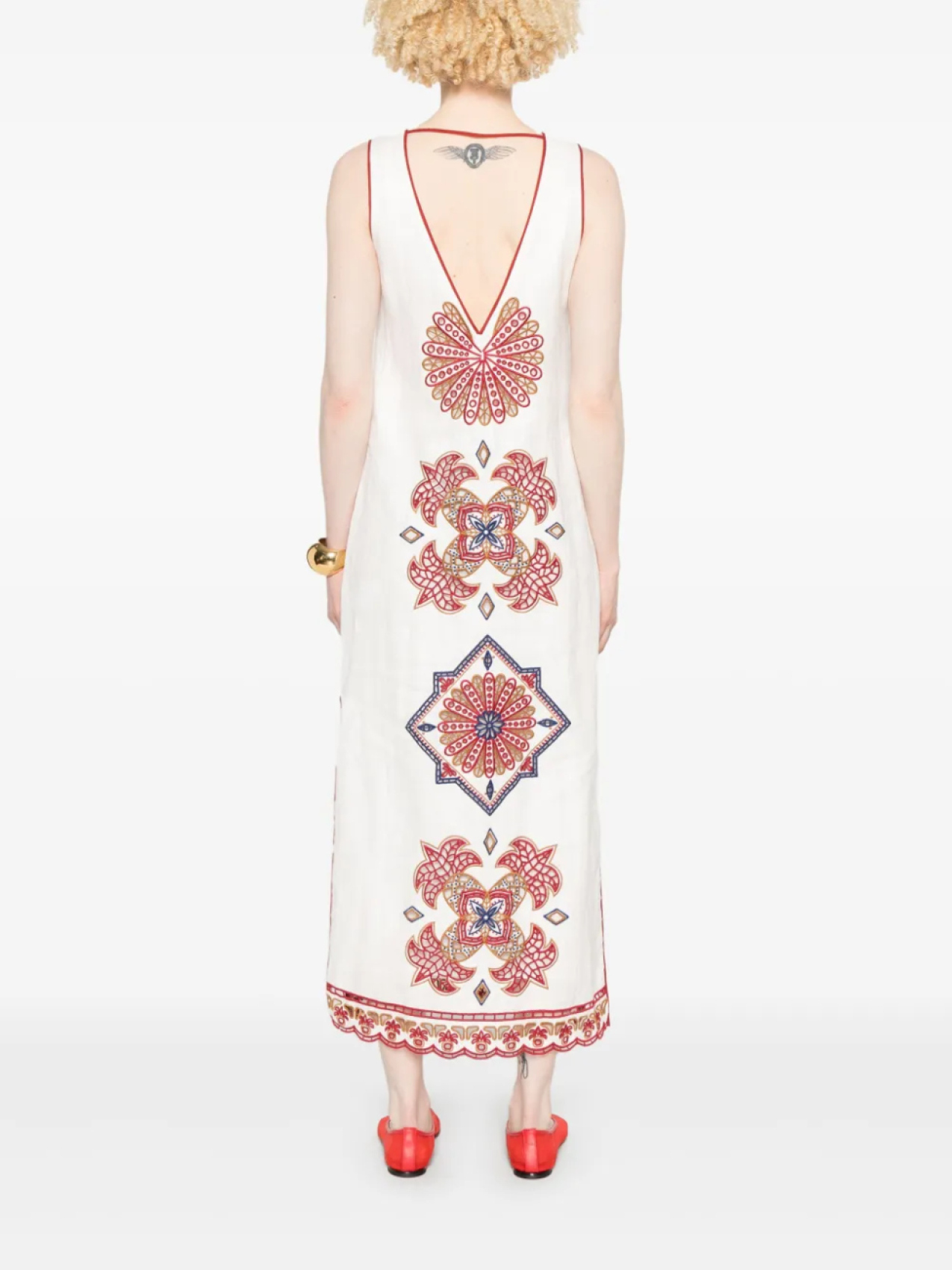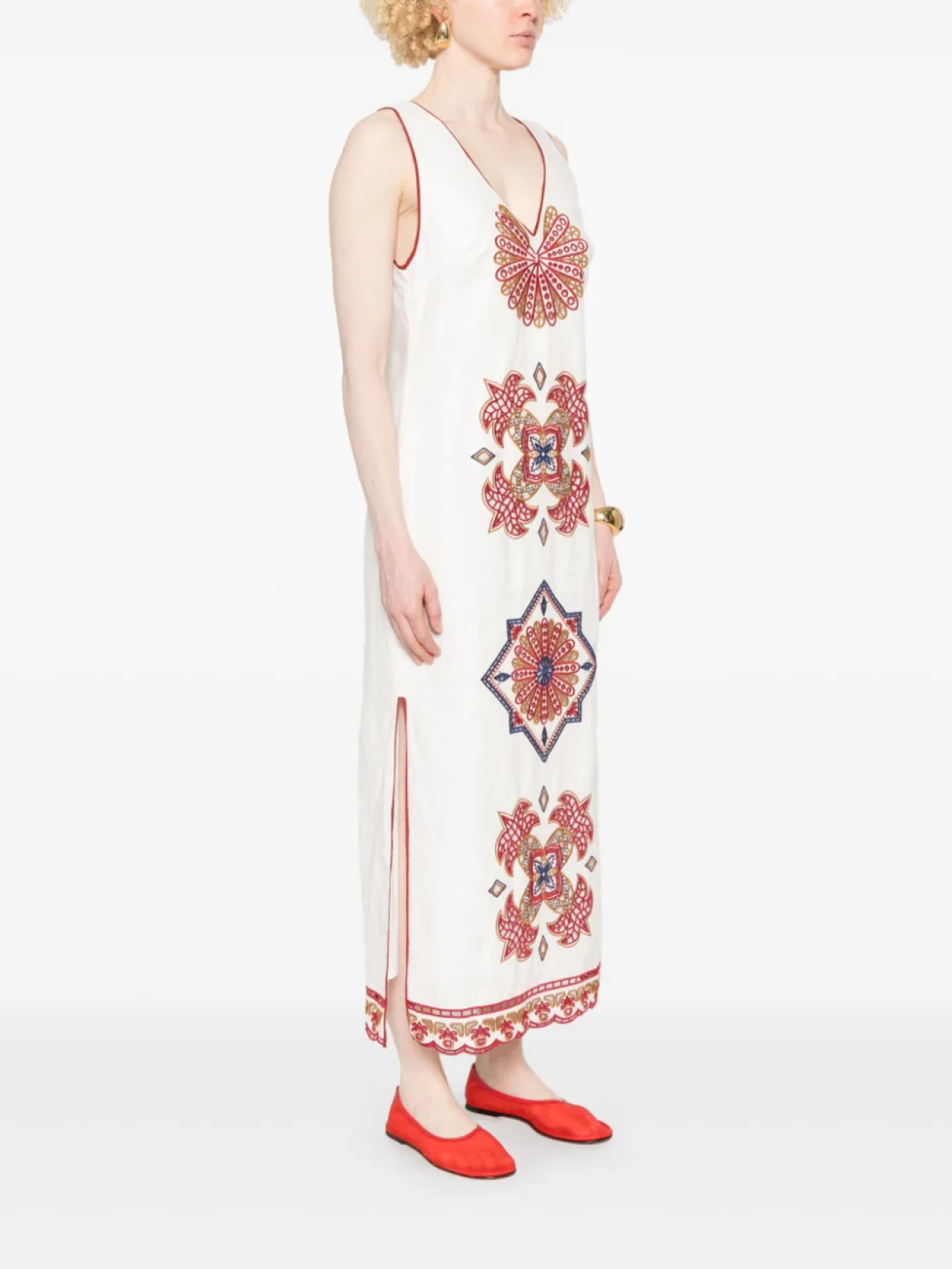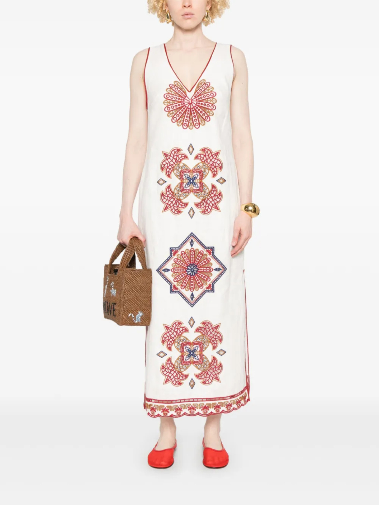 Платье миди FARM Rio Marys Tiles Richelieu, белый