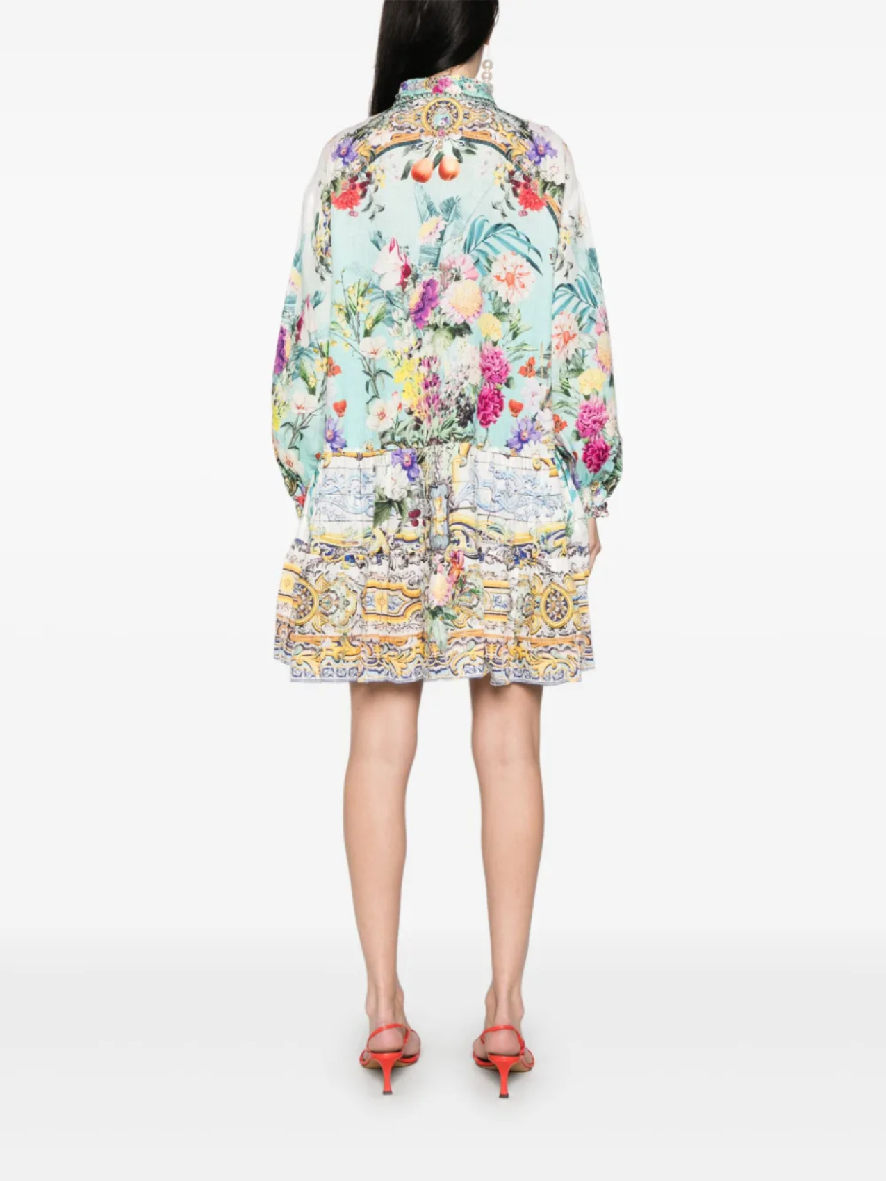 Camilla многоярусное мини-платье с длинными рукавами, синий