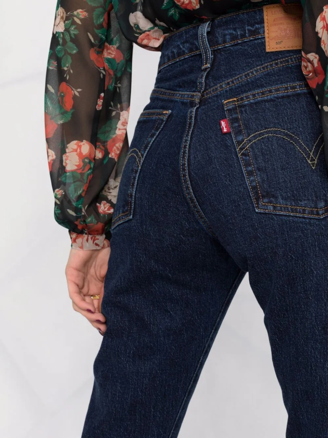 Tecido com stretch, нашивка с логотипом сзади, петли для ремня, потайная застежка спереди, классическая пятикарманная модель и прямой крой.