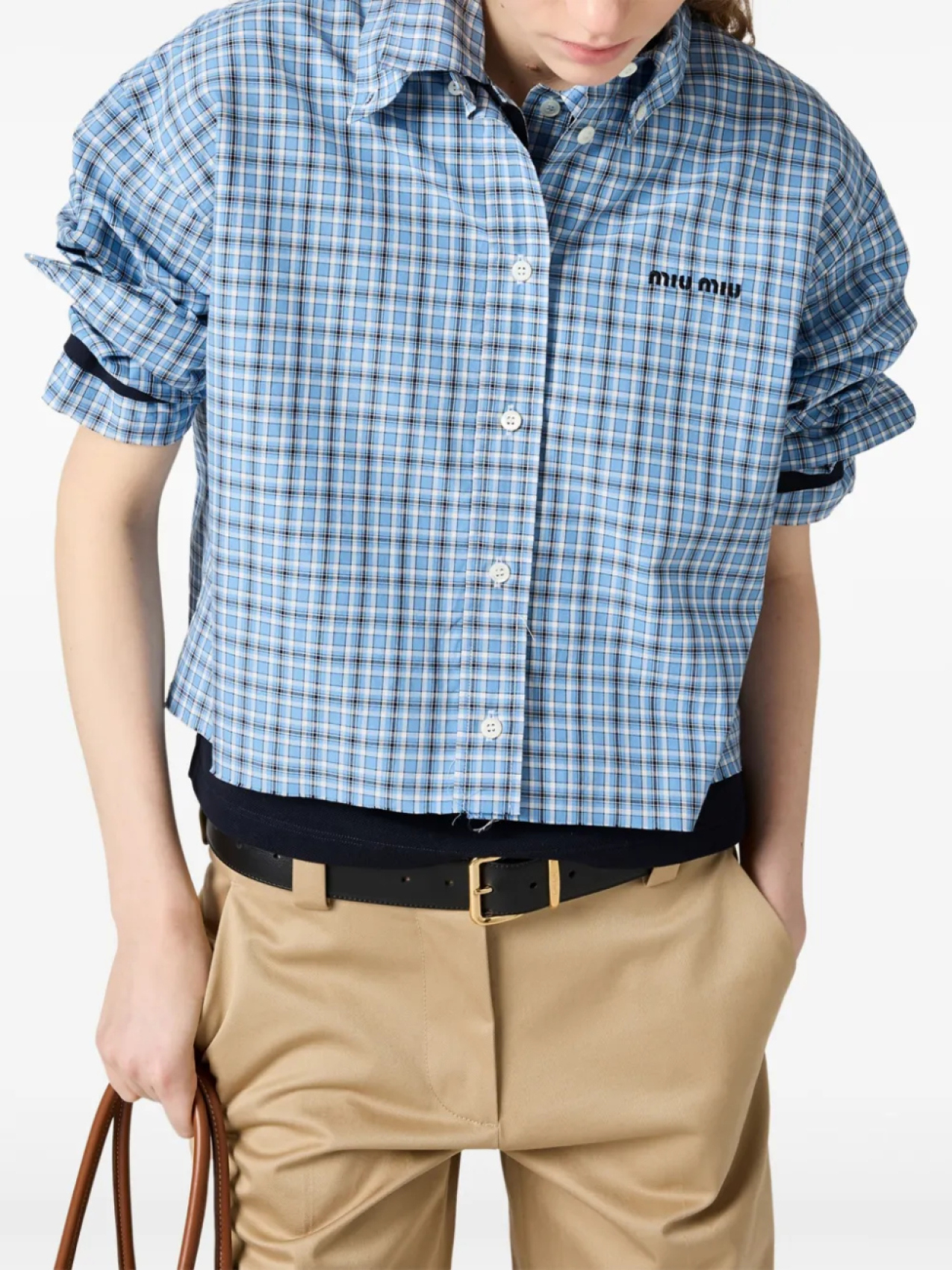 Miu Miu поплиновая рубашка в клетку, синий 116 078₽