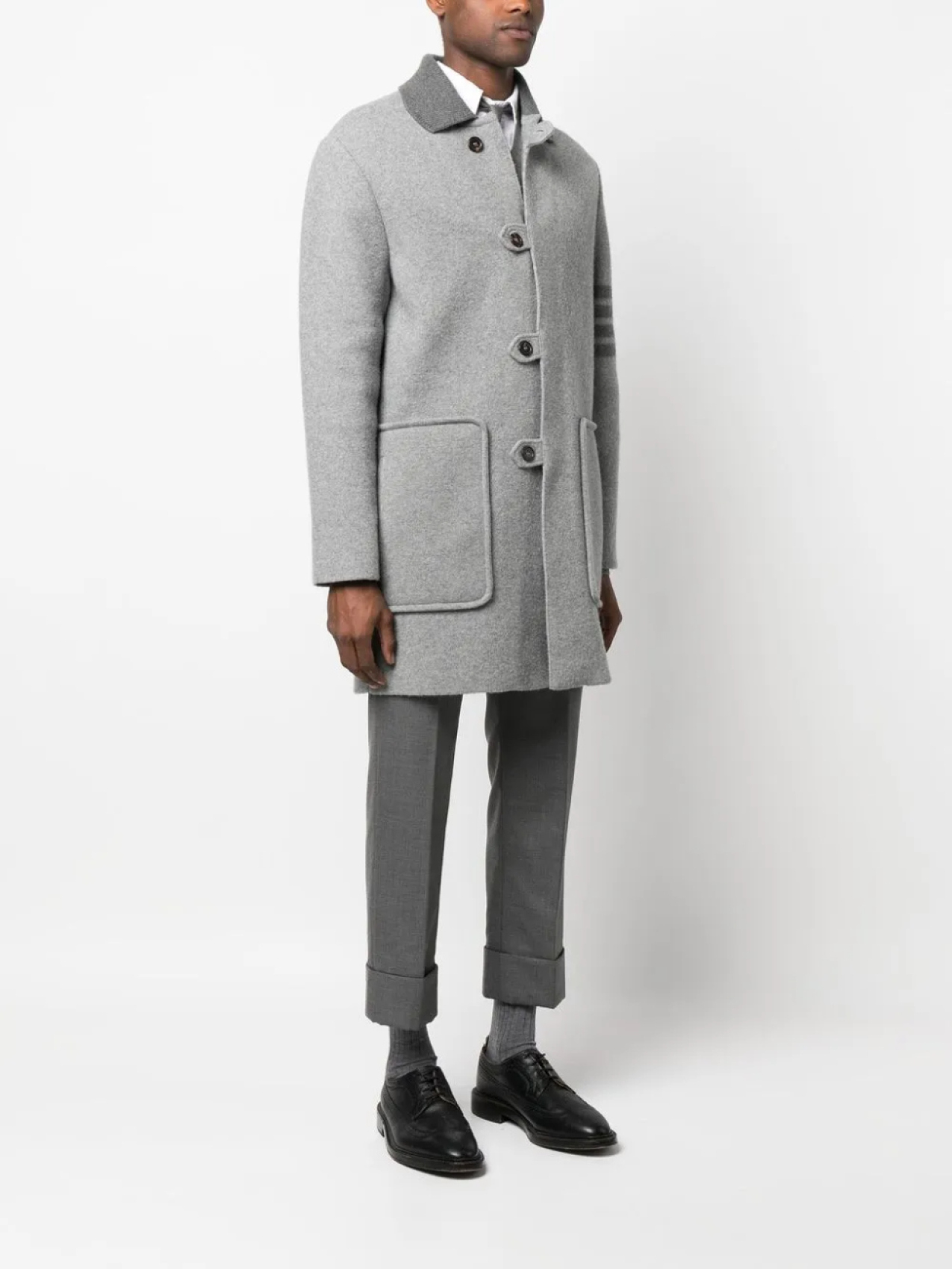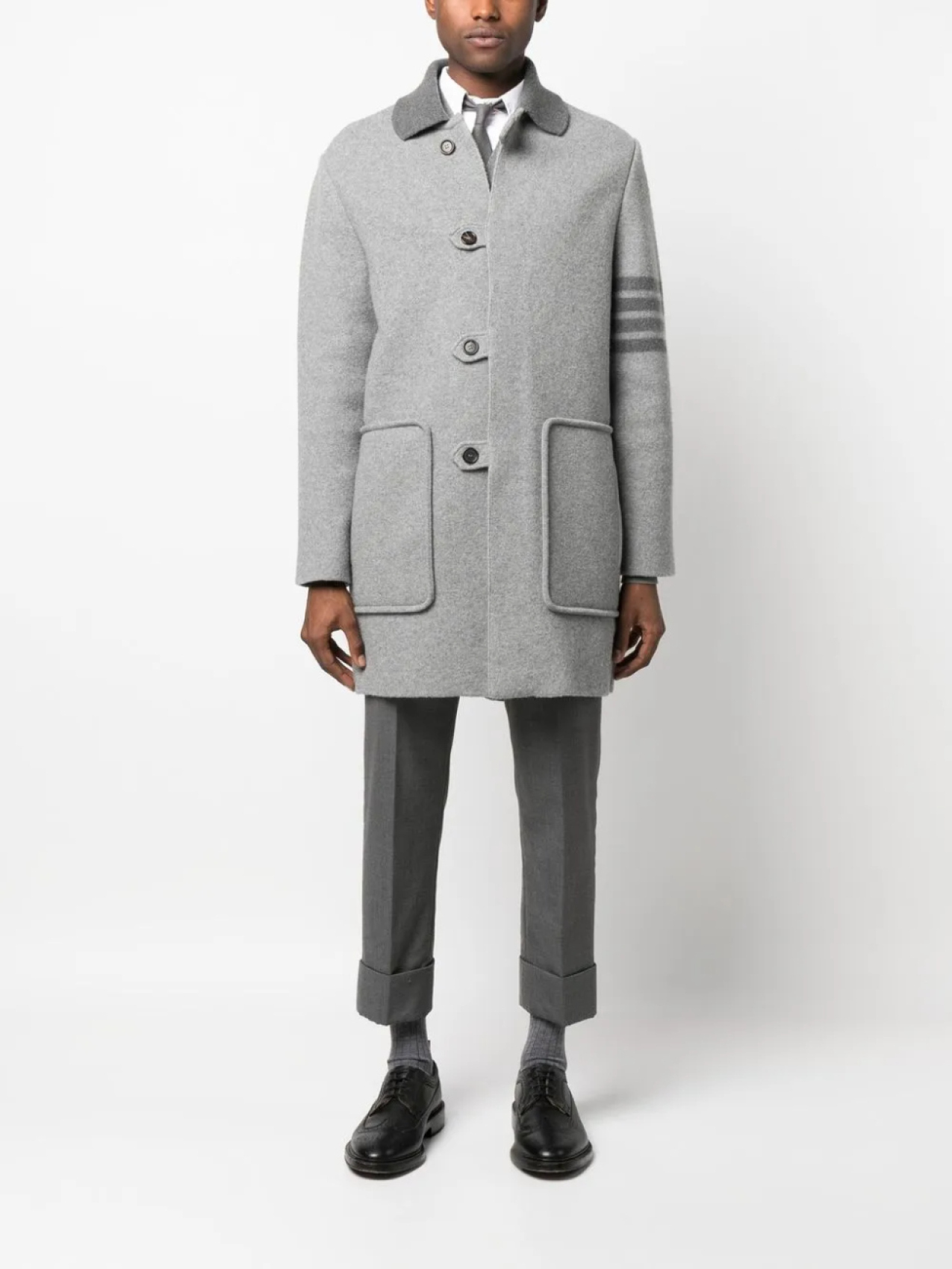 Thom Browne однобортное пальто с полосками, серый