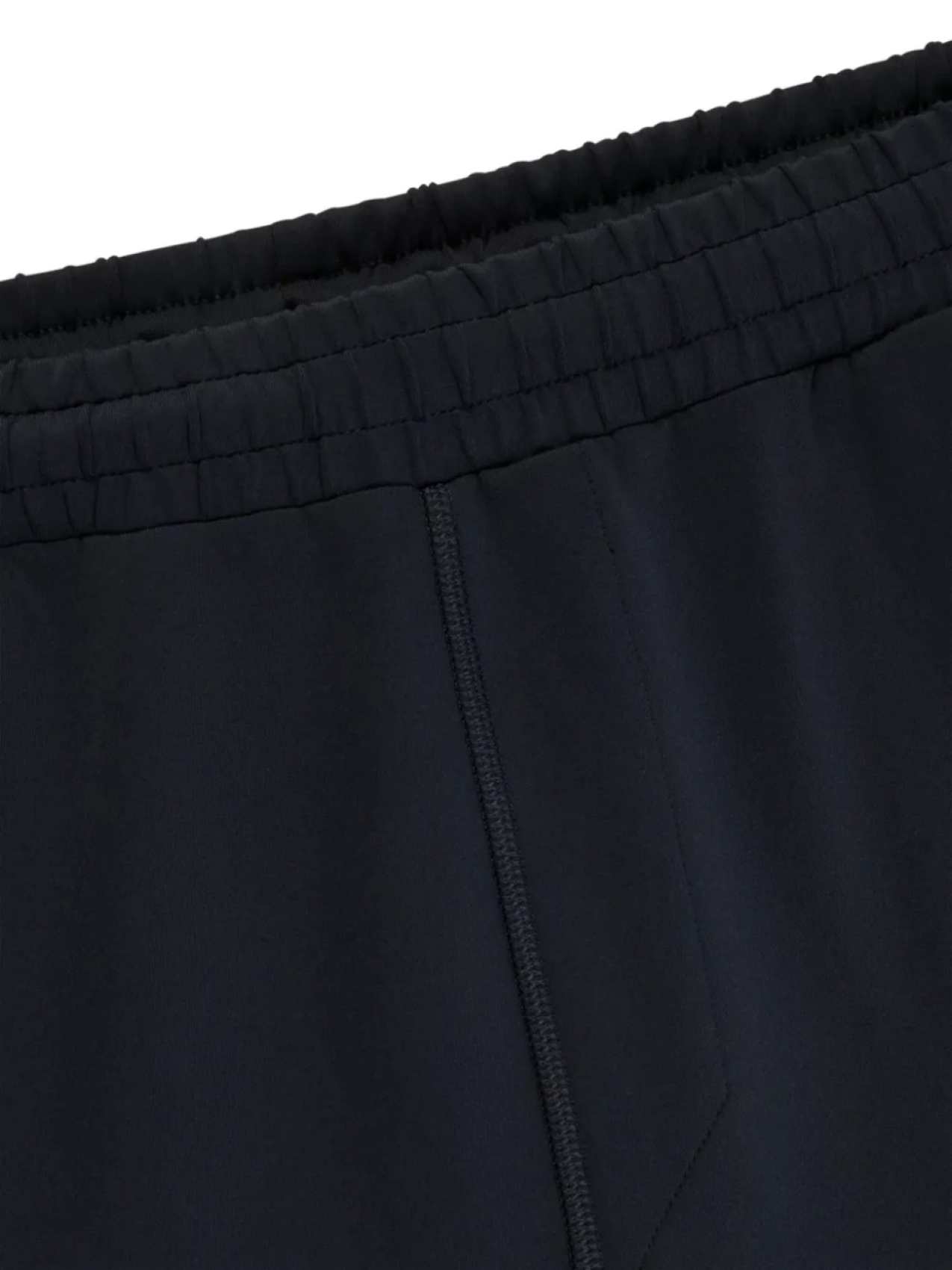 Эластичный пояс темно-синего цвета, два боковых кармана, карман на молнии сзади, ребристые манжеты