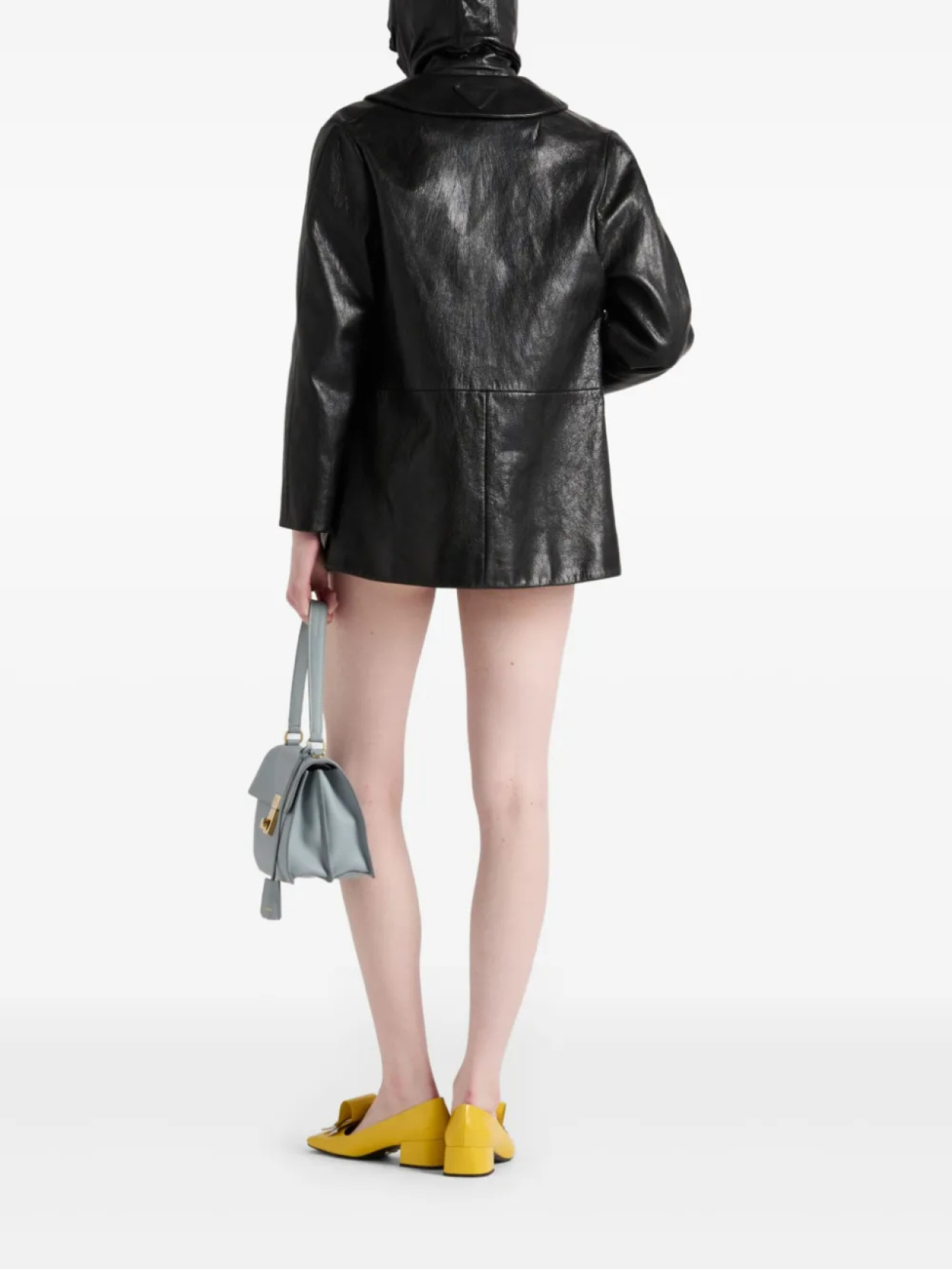Кожаная куртка Prada на пуговицах, черный 588 171₽