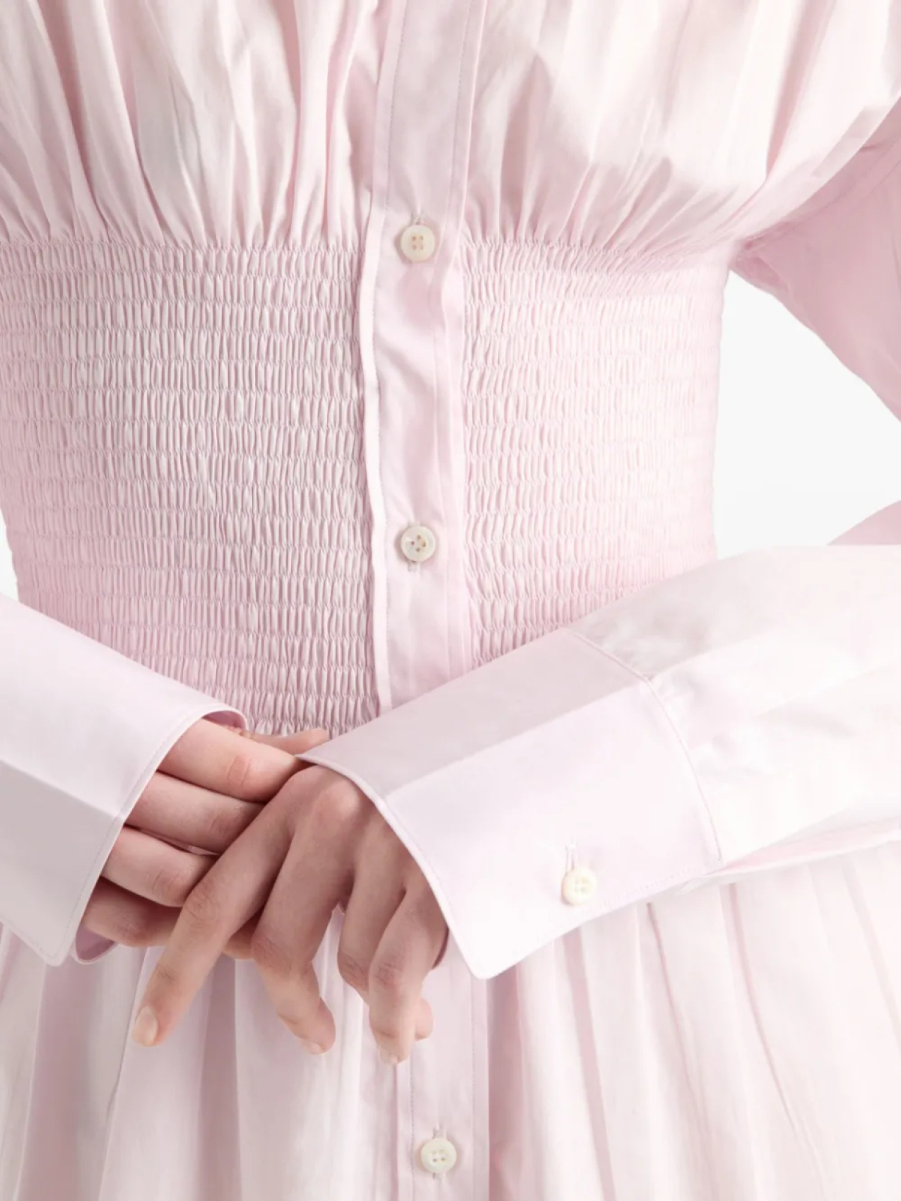 Prada поплиновая рубашка с присборенной талией, розовый 158 280₽