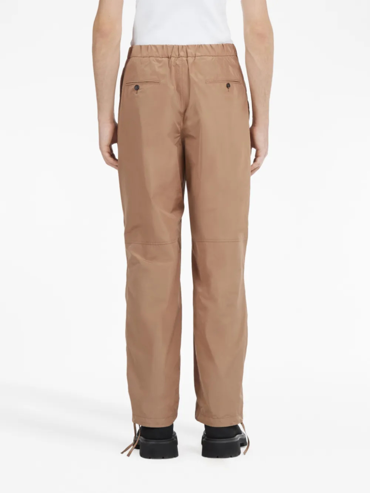 Песочно-бежевый, вуаль, средняя посадка, широкий крой, эластичный пояс, два накладных кармана по бокам, кулиска и задние карманы с листочкой.