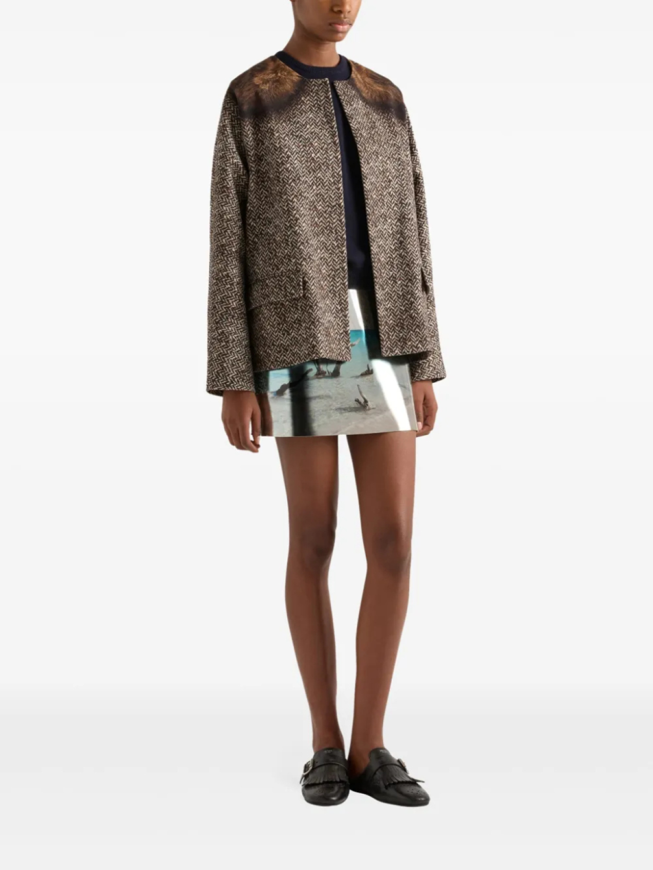 Prada однобортный жакет с принтом, коричневый 298 323₽