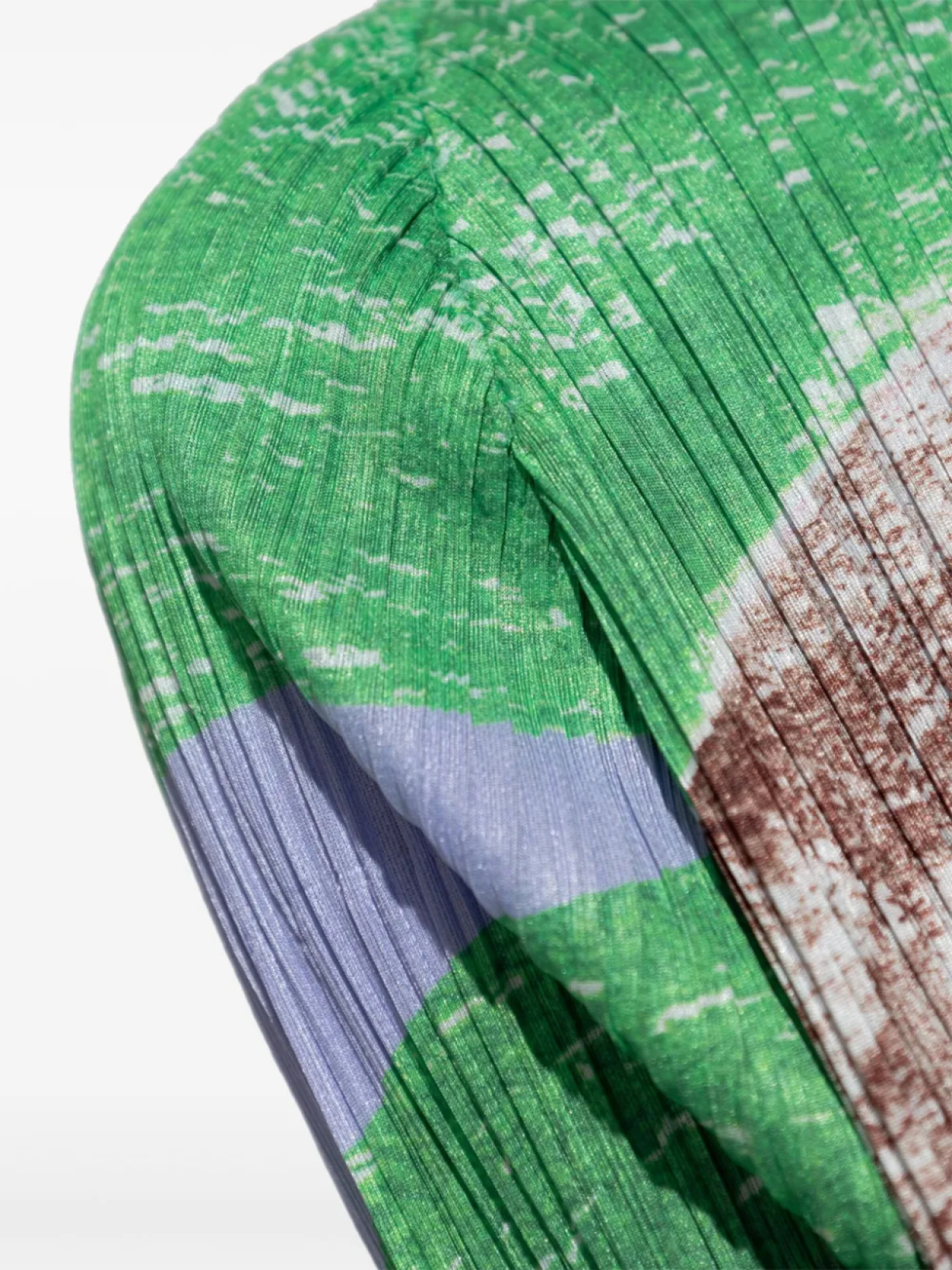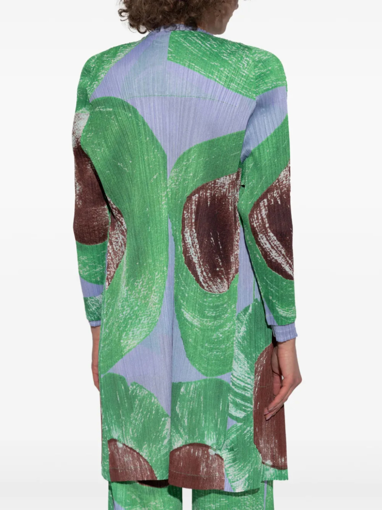 Коричневый, полностью плиссированный, с абстрактным узором, длинные рукава