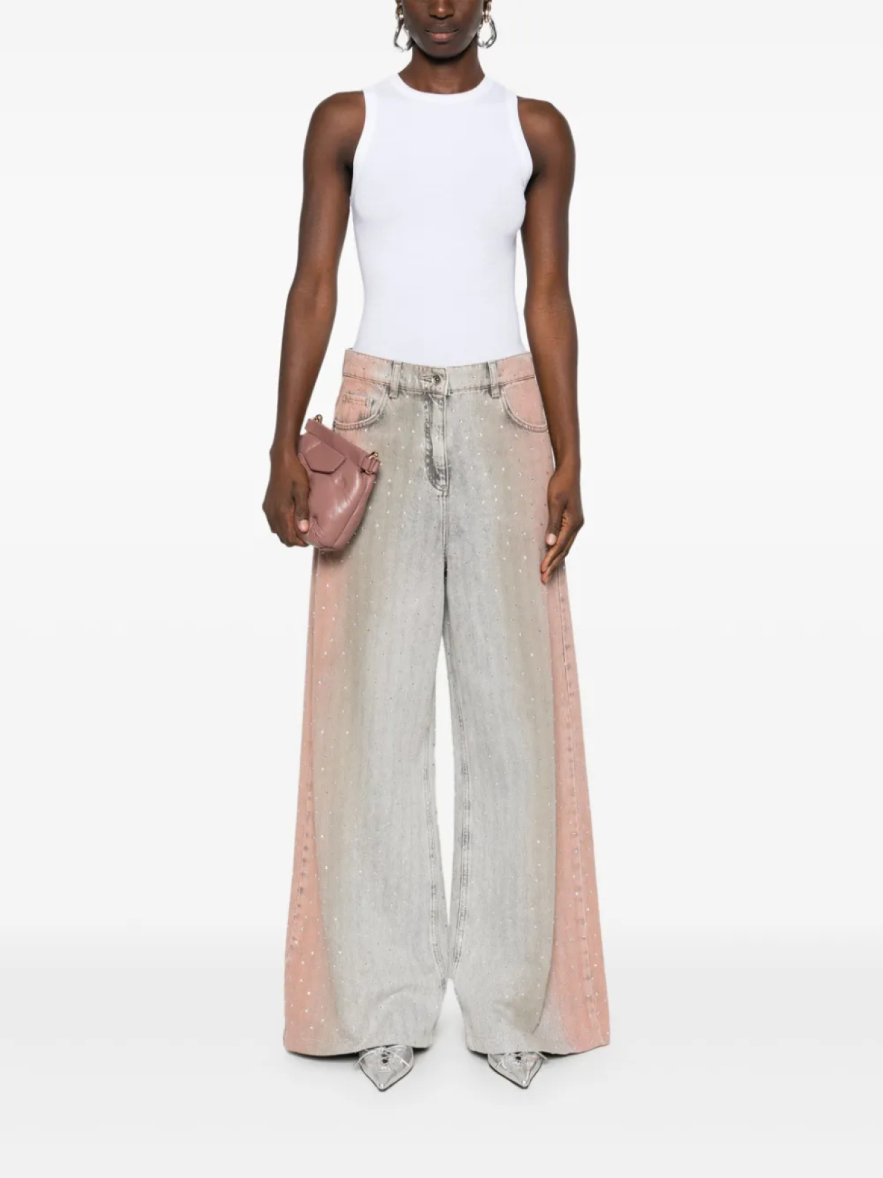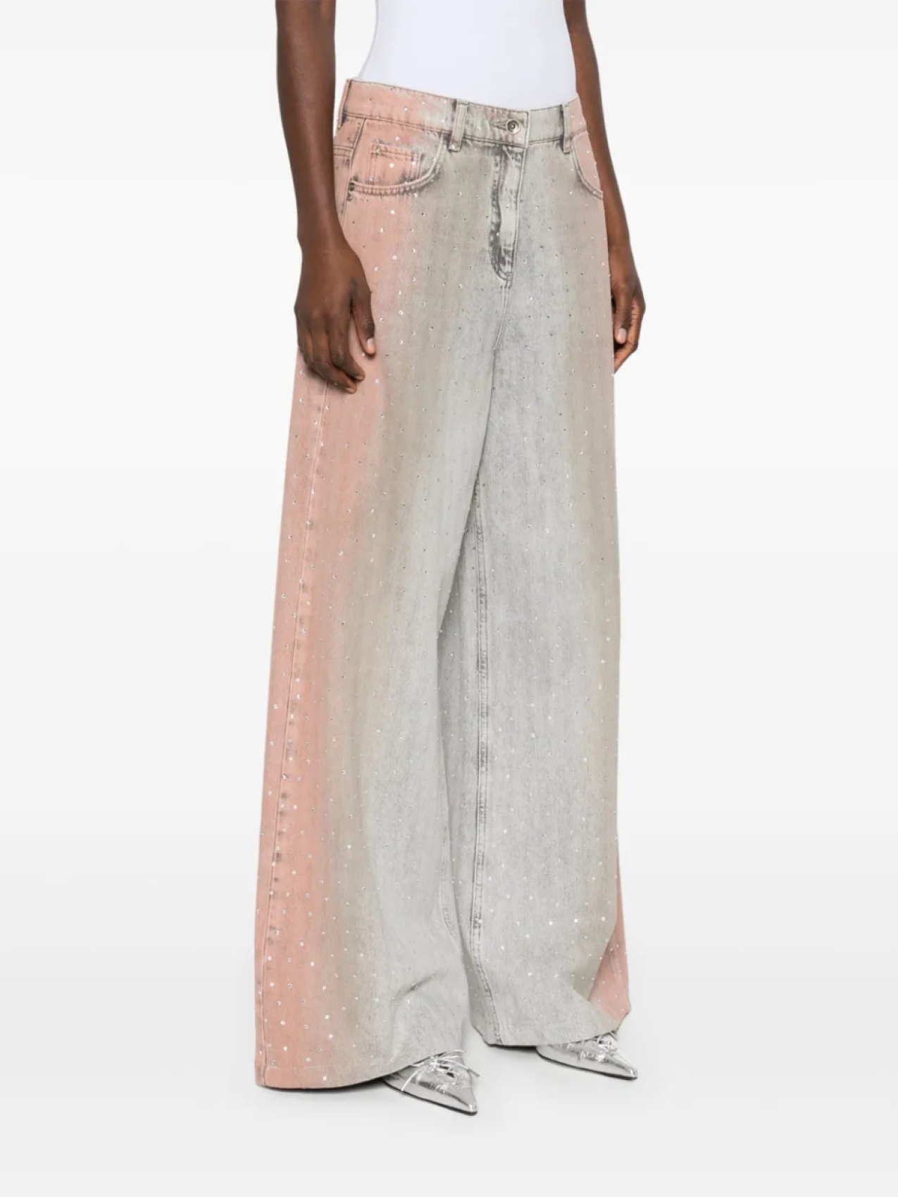 Джинсы Patrizia Pepe, украшенные стразами, серый