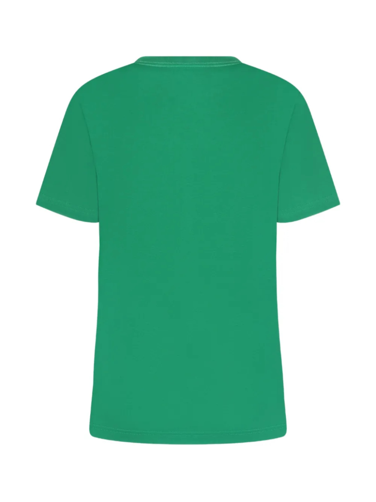 Лесной зеленый круглый вырез горловины, вышитый логотип на груди, короткие рукава
