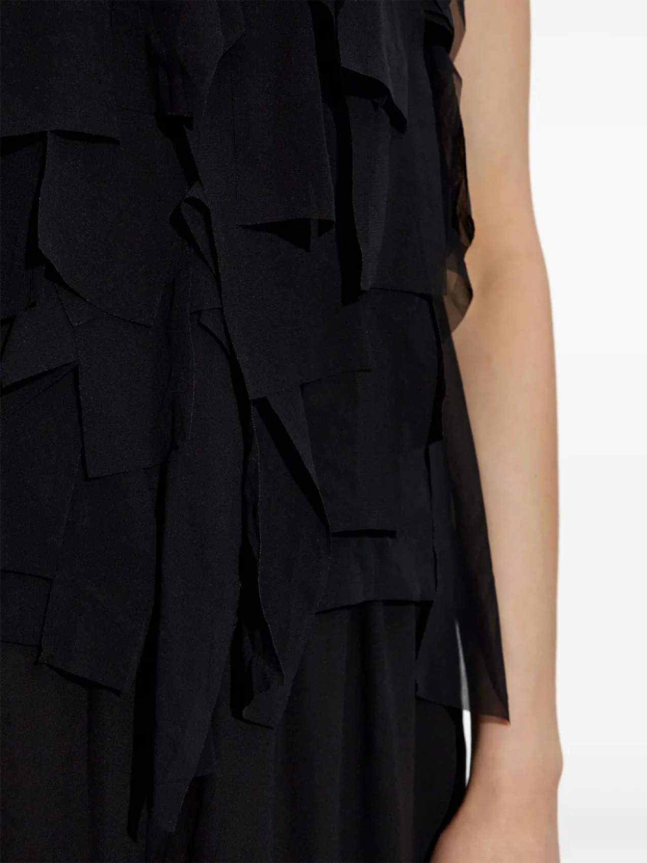 Черная потайная застежка-молния сзади, оборки, круглый вырез, без рукавов