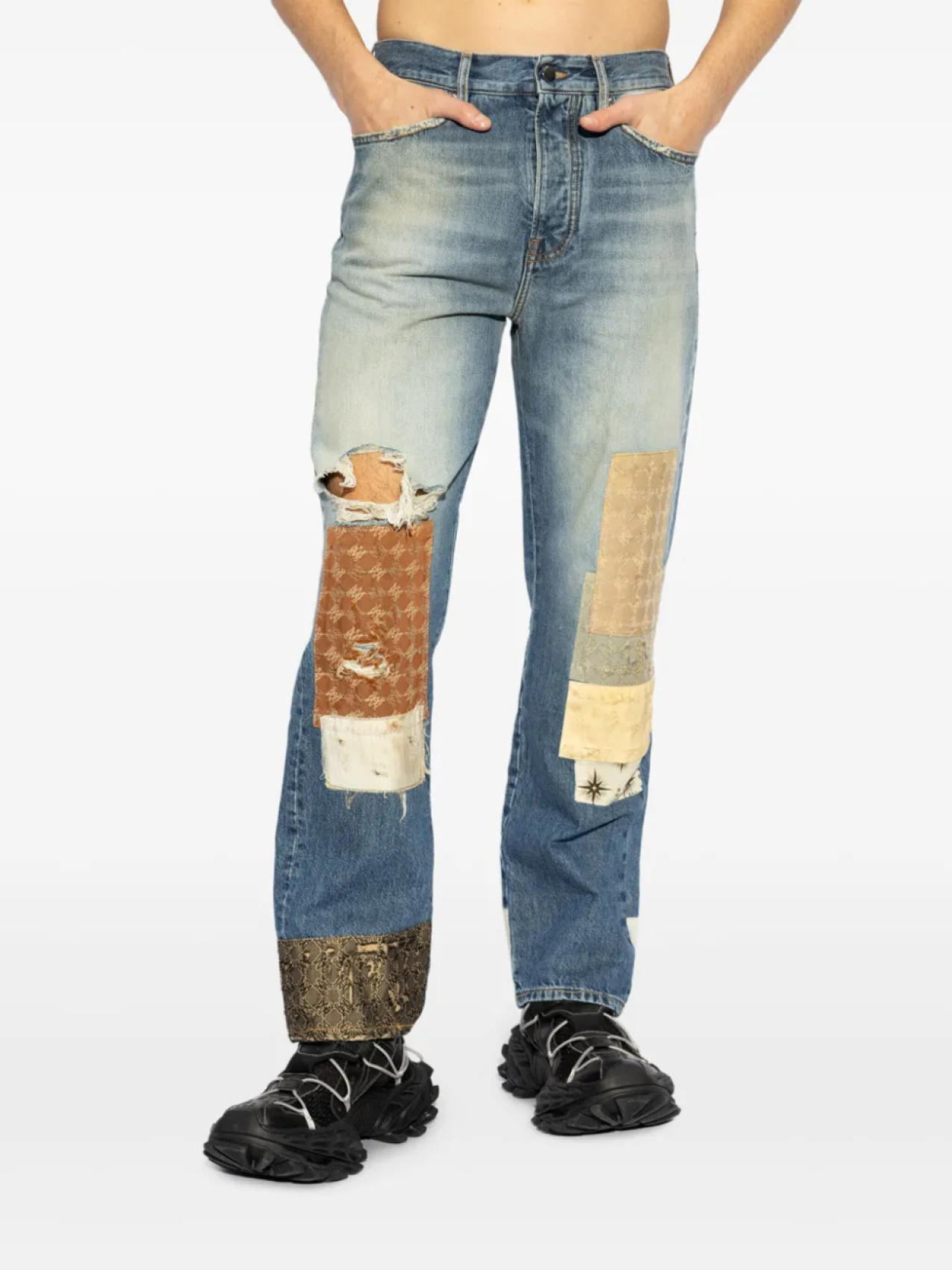 AMIRI джинсы прямого кроя в стиле пэчворк, синий 109 893₽