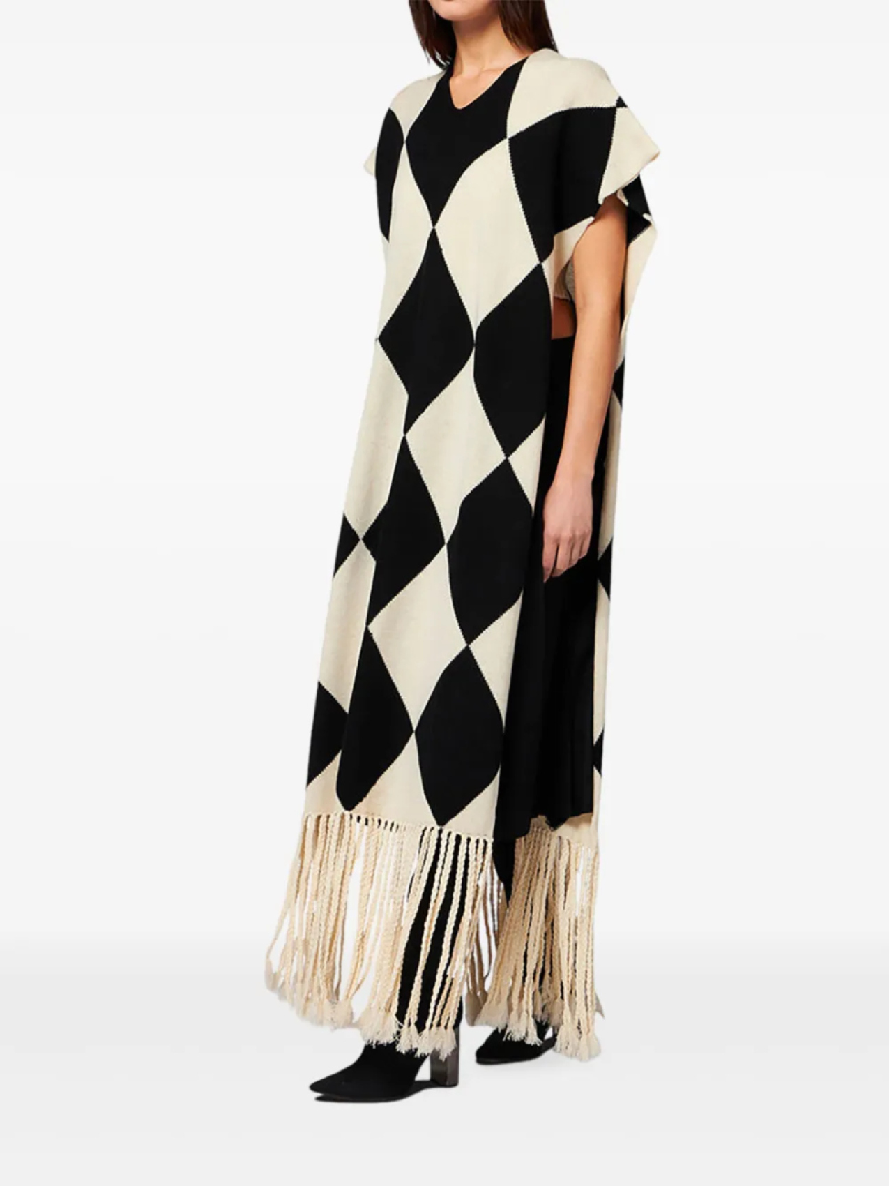 Светло-бежевый с V-образным вырезом без рукавов с бахромой