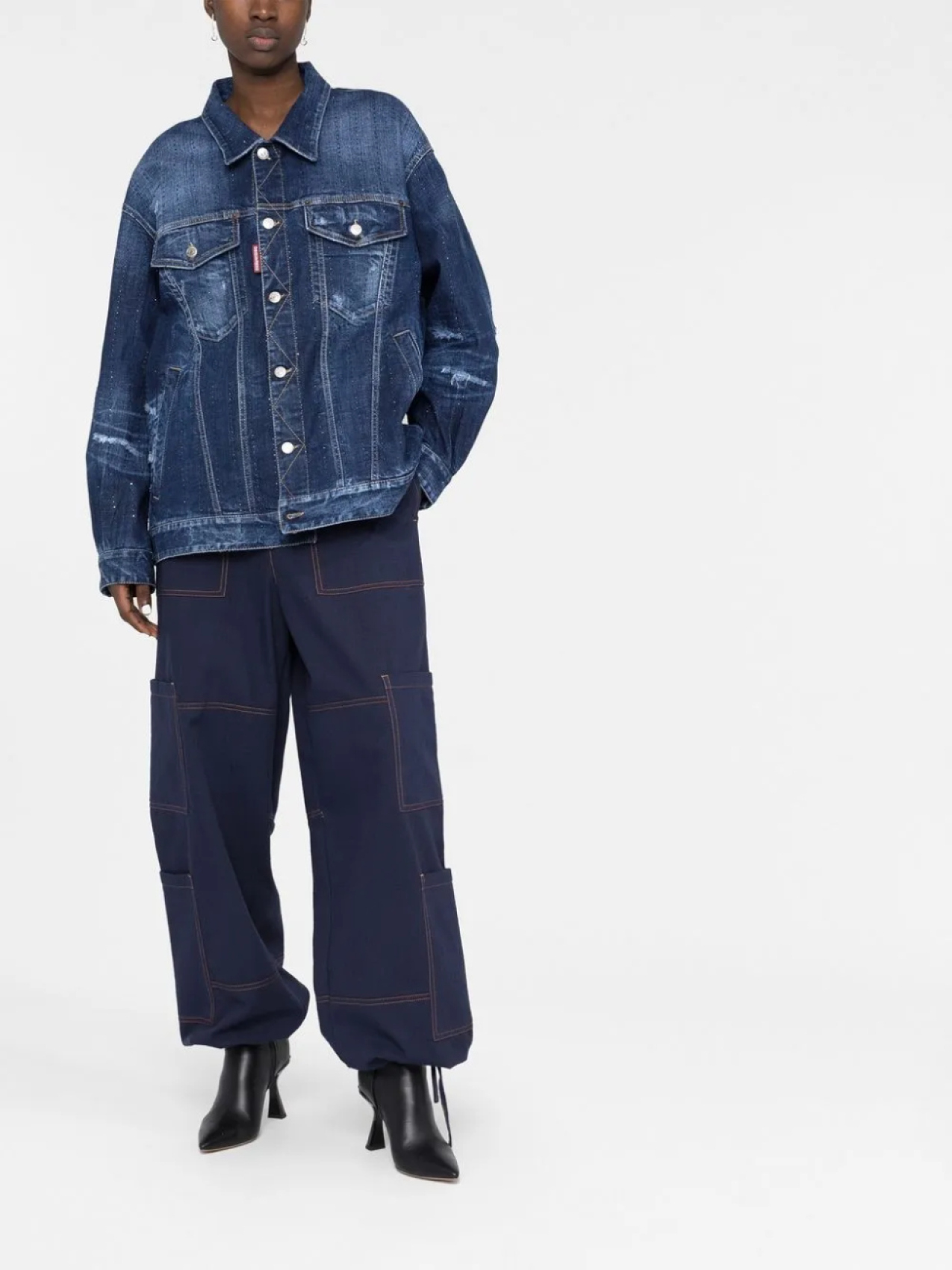 DSQUARED2 джинсовая куртка оверсайз со стразами, синий