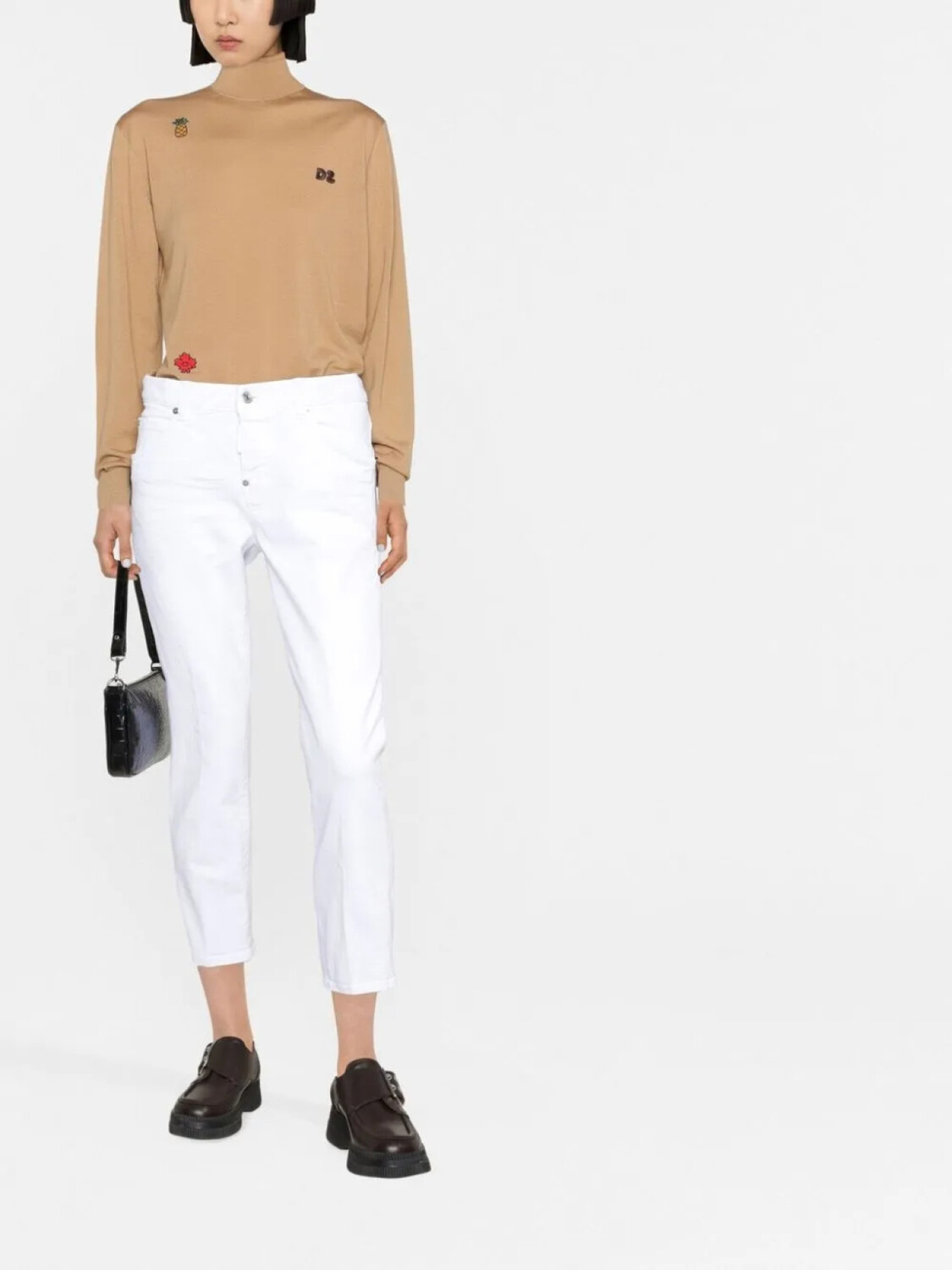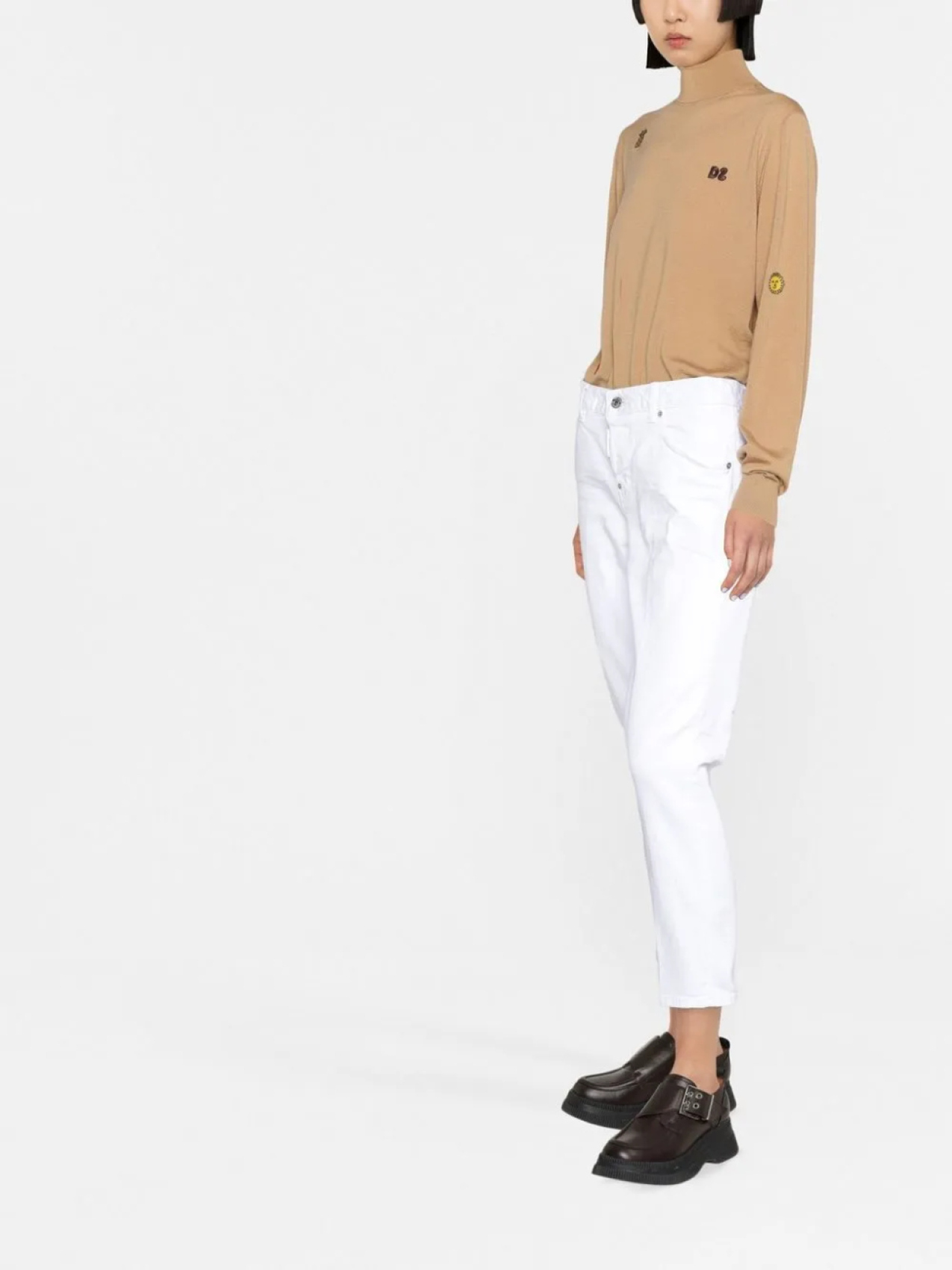 DSQUARED2 джемпер с высоким воротником и вышитым логотипом, коричневый