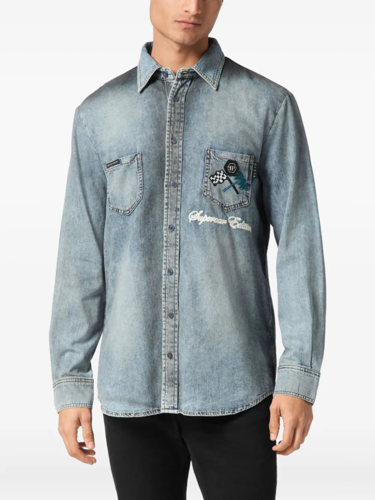 Джинсовая рубашка Philipp Plein Cars Racing, синий